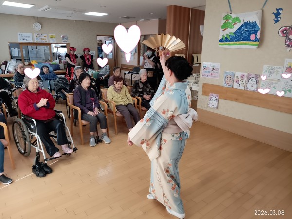 日本舞踊では美しい所作と華やかな雰囲気に皆様じっと見入っておられました。