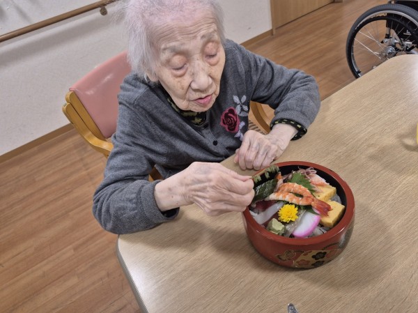 ●〇グループホームみんなの家・川崎久地「嬉しい・美味しい・お寿司の日! ~地域のお寿司屋さんからの出前昼食だ!~」〇●