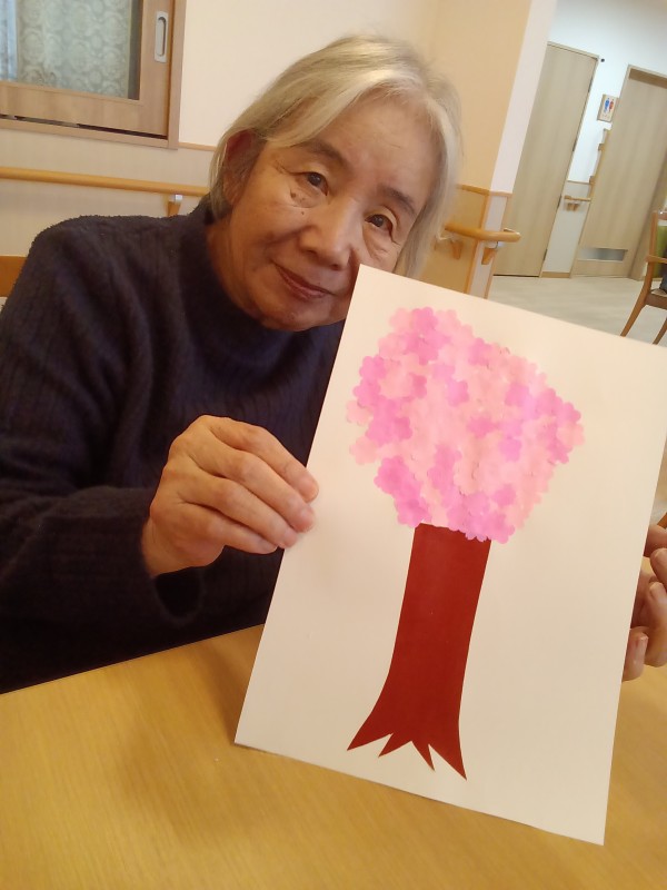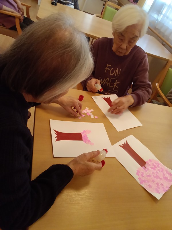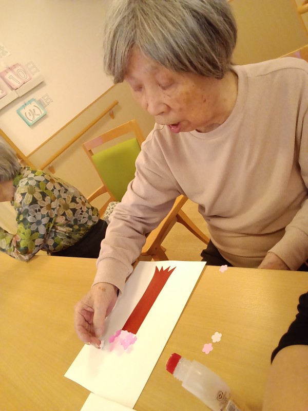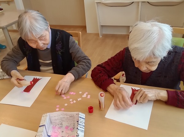 型抜いた桜の花びらを好きなように貼りました!