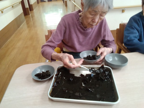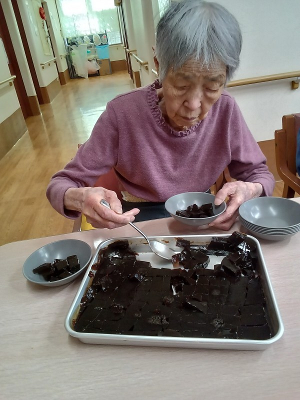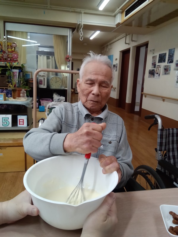 先日、お客様におやつ作りのお手伝いをしていただきました。