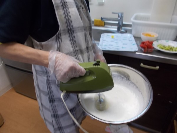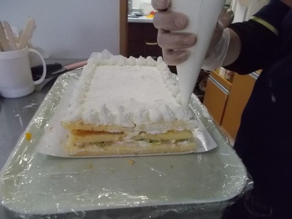 いよいよ腕の見せ所!ケーキの縁取りもホイップクリーでム鮮やかです。\(^o^)/