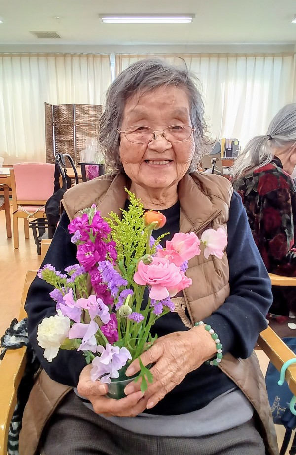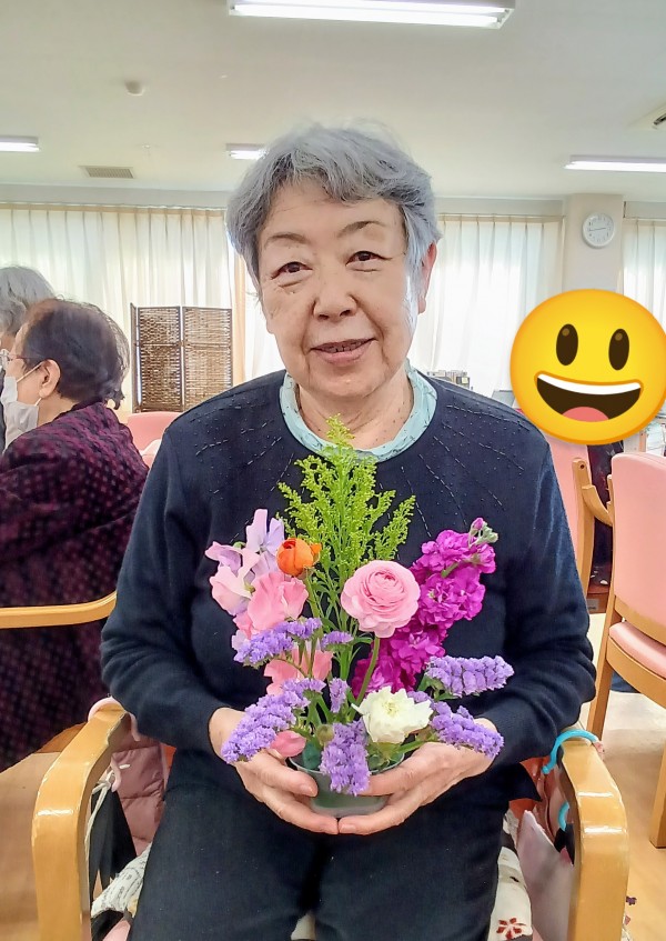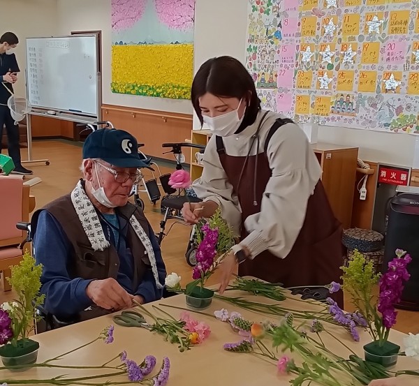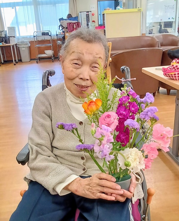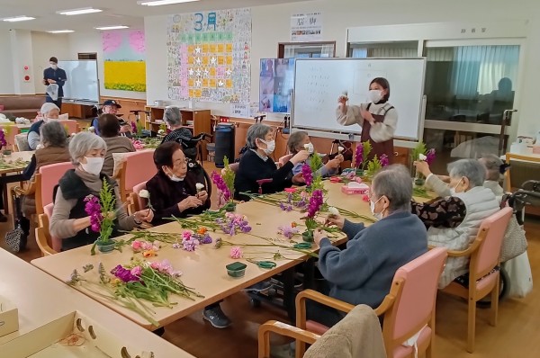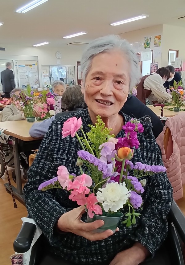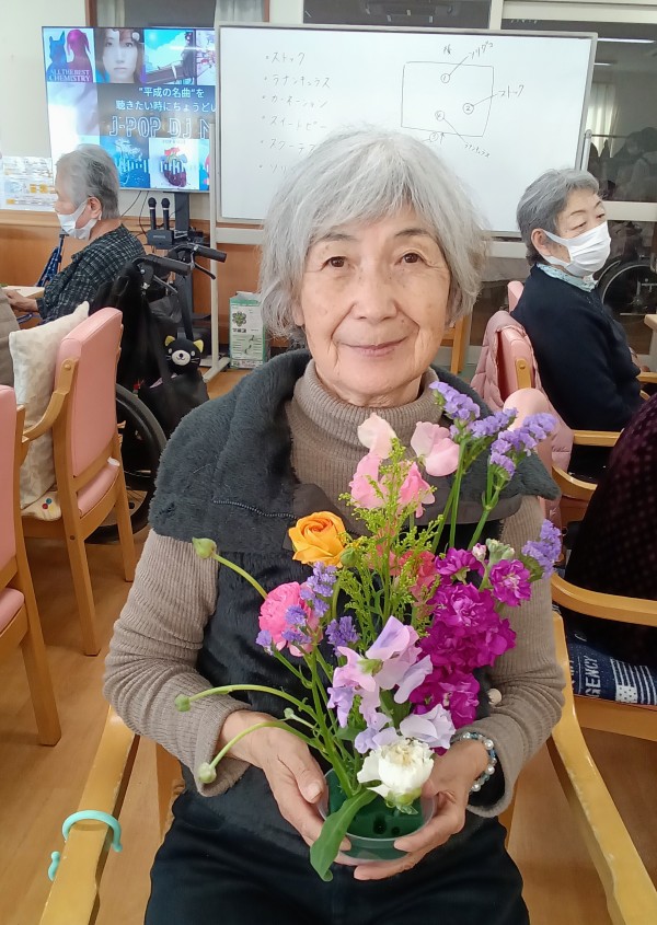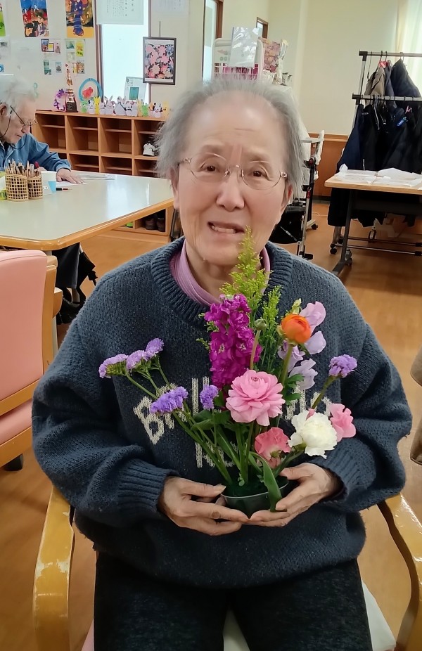 デイサービスセンター遊・志木上宗岡 春のお花でフラワーアレンジメント(*´ω`)