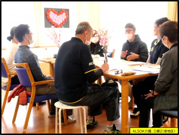 この会議には施設所長(新井ホーム長)・各階の責任者(2名)、ケアマネージャー(1名)、ご入居者のご家族(出席は任意)・自治体職員(三郷市)・自治会(三郷2では泉町会)等の方々に出席して頂き、運営状況(ご入居者様の平均要介護度・レクリエーション活動の開催)、入居者様のケガや転倒等の身体に関わる事等発生状況、等々をご報告します。