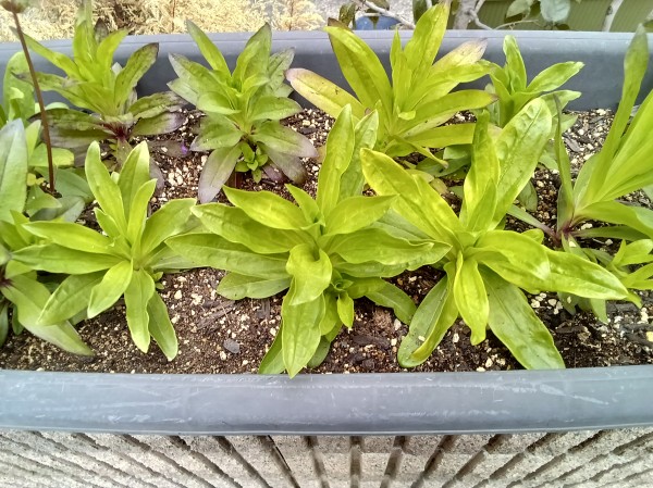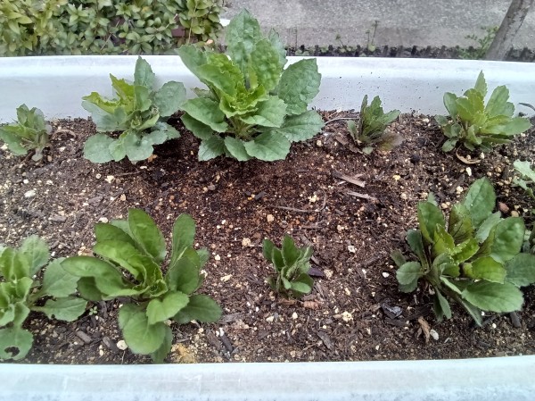 冬に植えた、チューリップ、アスター、なでしこ