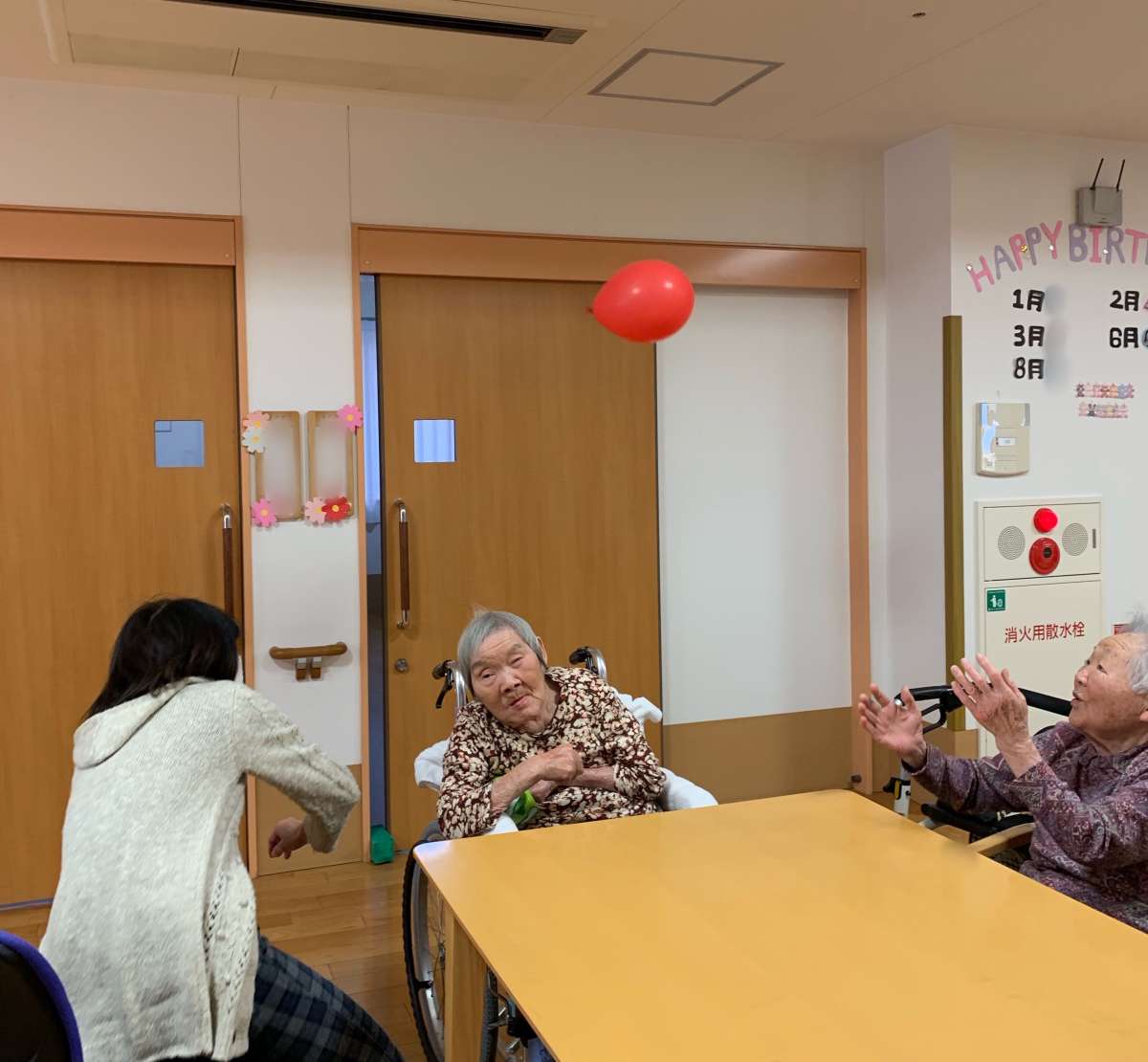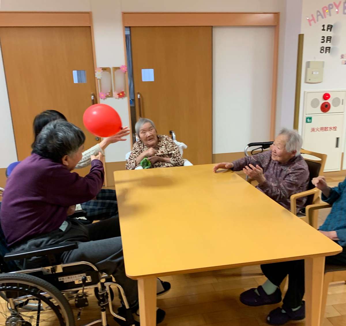 先日ご家族様にも参加いただいて風船バレーをやりました。