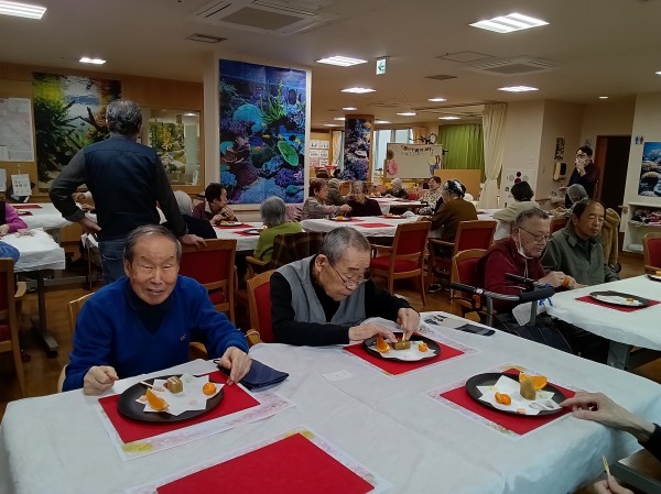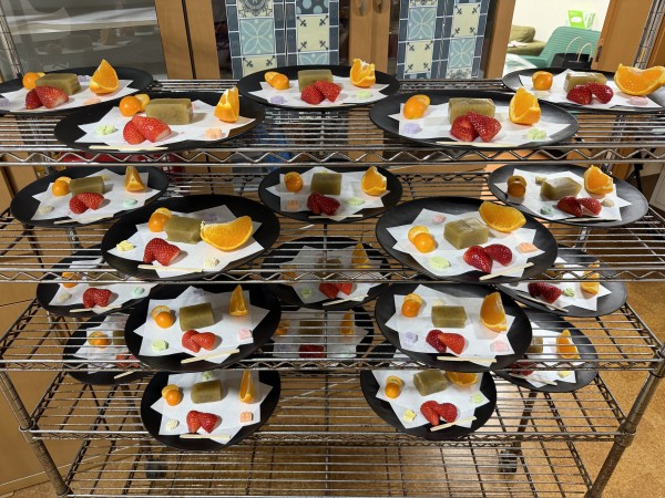いちご、金柑、デコポンがふきのとう羊羹と肩を並べ、落雁がワンポイントとなった一皿となっております(`・ω・´)