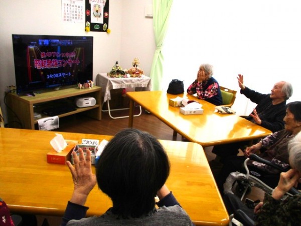 テレビの前に集まって歌謡曲コンサートの鑑賞を楽しみました。 盛り上がりました・・・(*´ω`*)