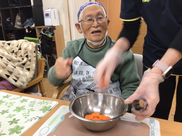 男性も女性陣のお祝いに協力をしてくださり、調理をお手伝いしてくださいます!