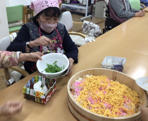 デイサービスかたくりの里相模台では、ひな祭りのお祝いに