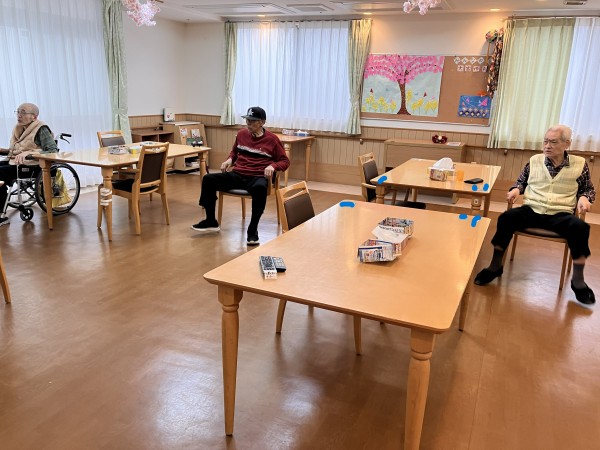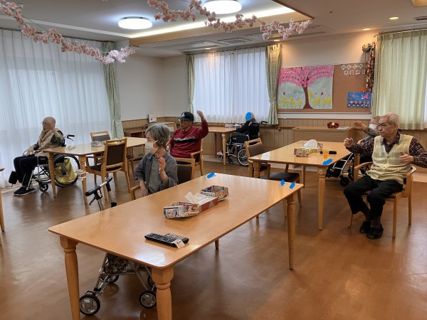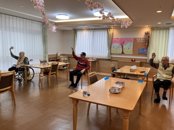 次々と集まって、健康増進コンテンツ体操に真剣に取り組んでおります。