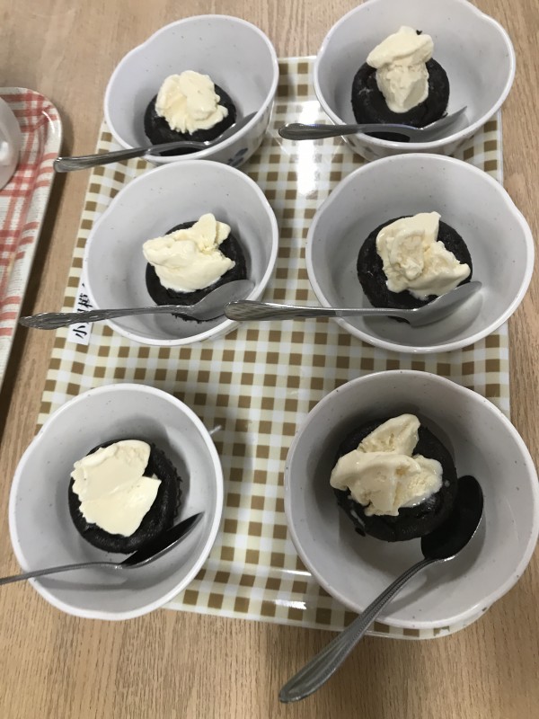 ガトーショコラのバニラアイス添えのケーキでお祝いしました(^^♪