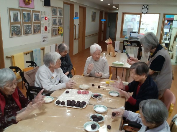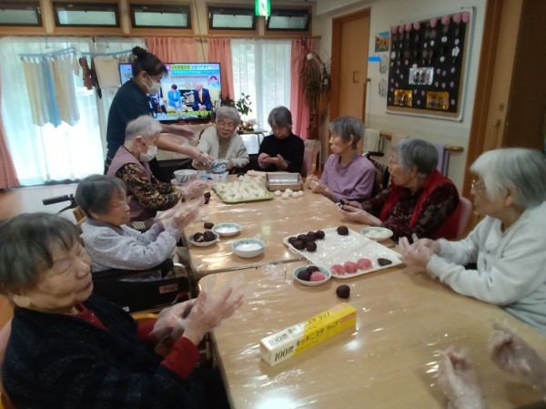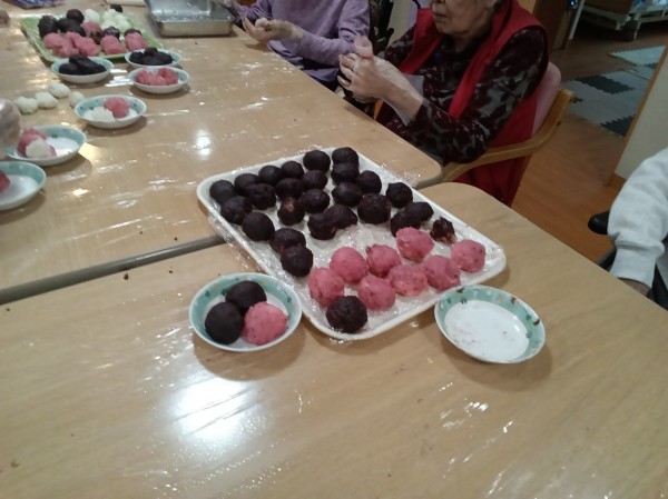 今年は2種類の味のぼたもちを作り、見た目も鮮やかで