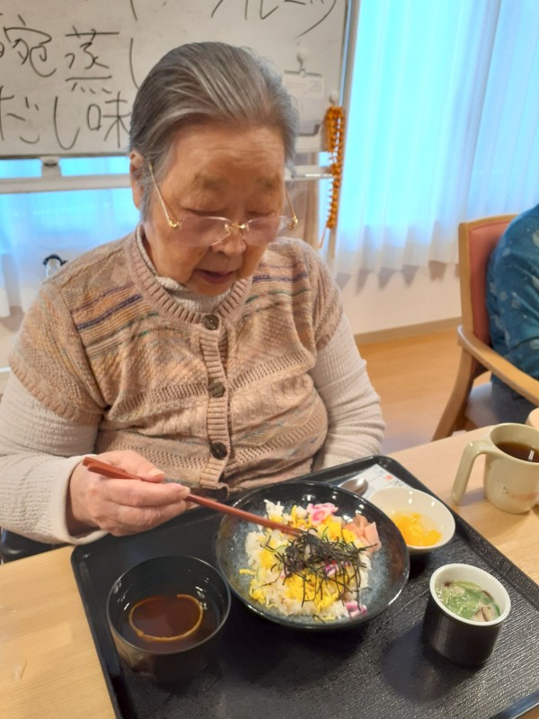 いつも、アミカの郷津田沼のブログをご覧いただきありがとうございます(*^-^*)3月3日の昼食は、春らしい彩りのちらし寿司を楽しみました。季節の行事を感じながら、心もお腹も満たされる時間となりました。