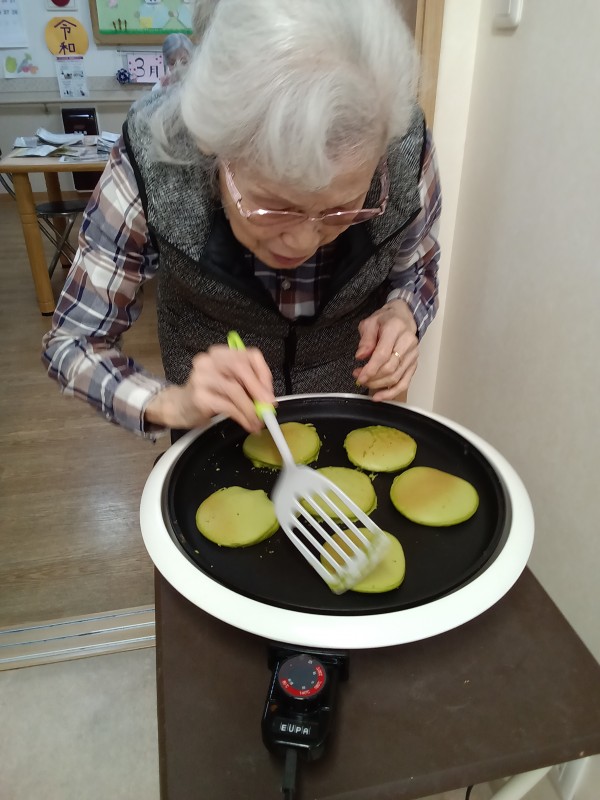 ホットケーキミックスに抹茶を混ぜて焼きます。