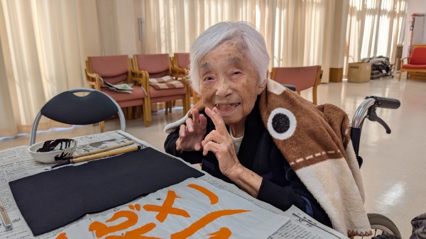 職員と談笑しつつ素晴らしい字をお書きになりました(^^♪