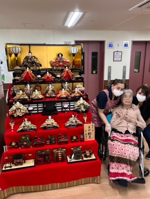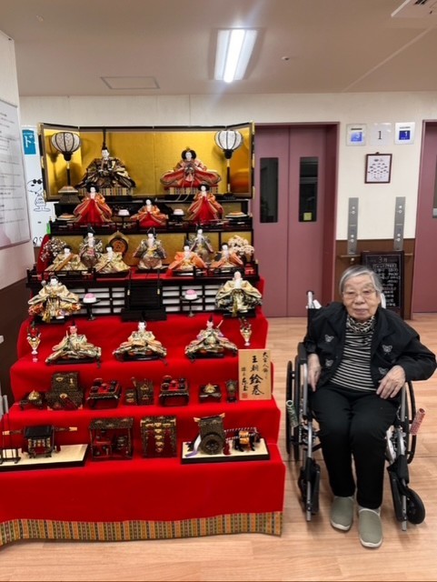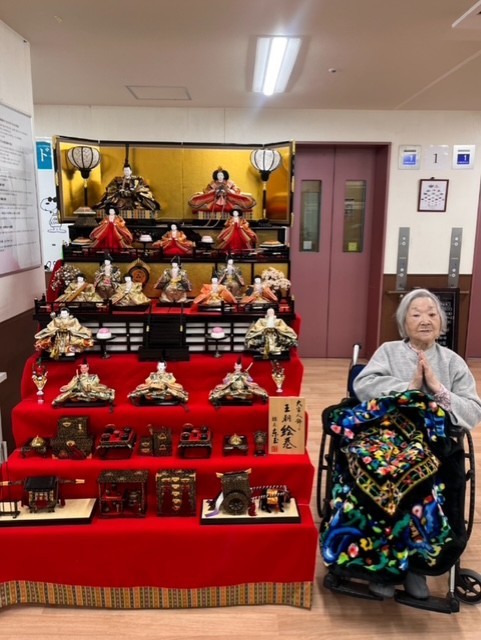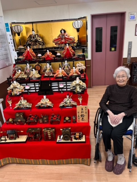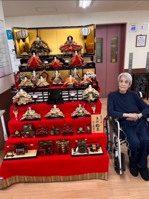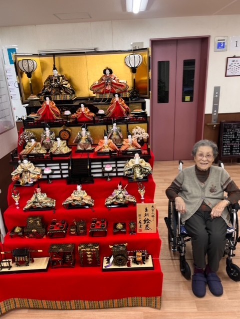 七段飾りの雛人形が並ぶと、施設内も一気に華やかな雰囲気に。