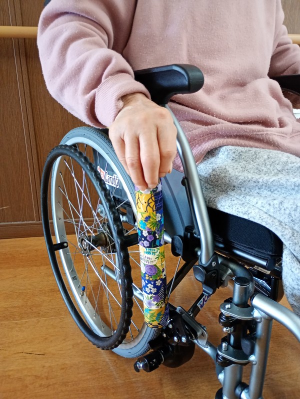 そんな中、本日は、とある入居者様の車椅子のブレーキカバーを新調したので、ご紹介させていただきます。