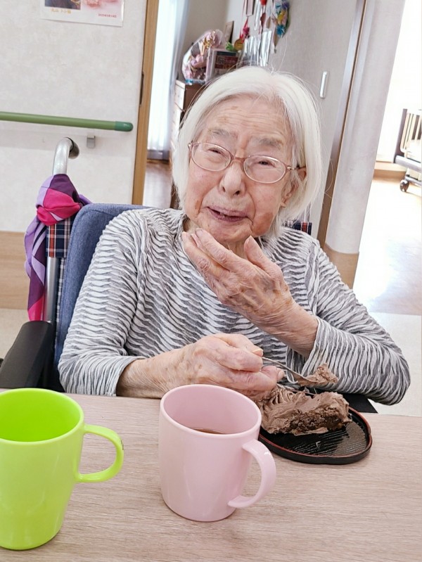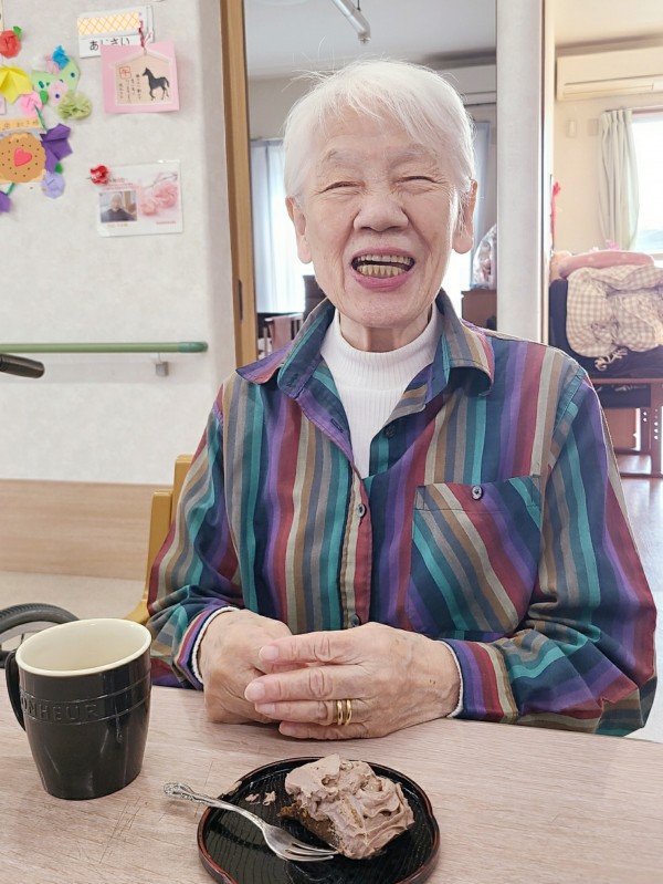 主役のH様は職員の声掛けにもほとんど反応せず、ず~~っとケーキに集中しておりました。