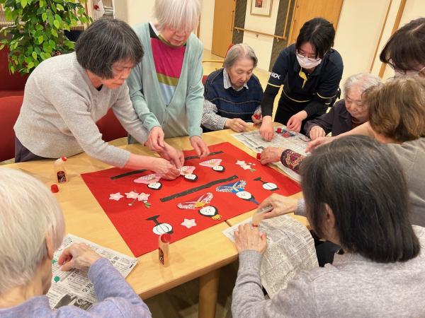作っている間もおしゃべりが止まらず、とっても楽しそうなご様子!職員も「いいですね~」「その色かわいい!」と一緒に盛り上がりながらお手伝いしました