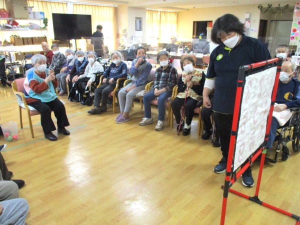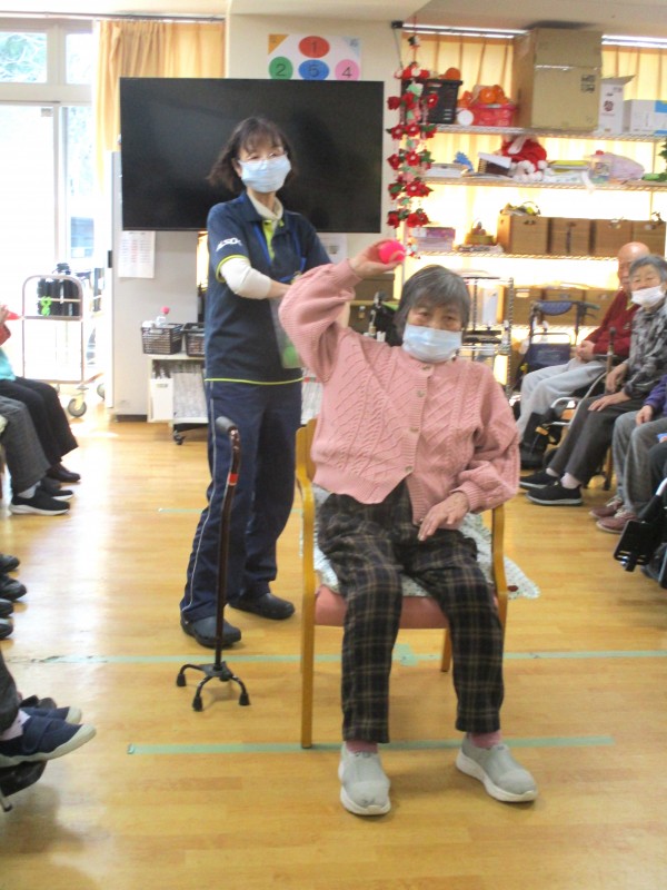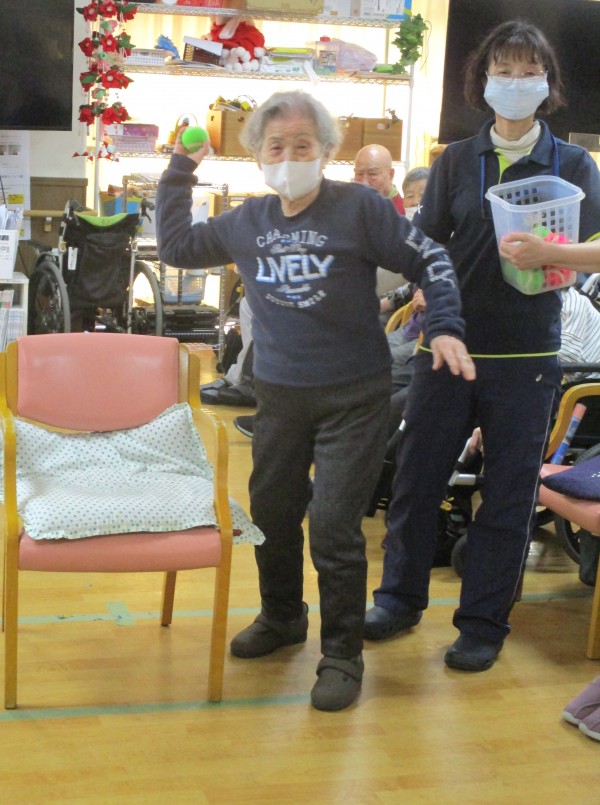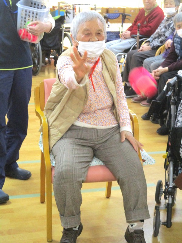 的当てゲームは、上肢の運動だけでなく、距離感や力加減を考えることで脳の活性化にもつながります。また、成功体験が自身にもつながり、自然と笑顔あふれる時間となりました♪
