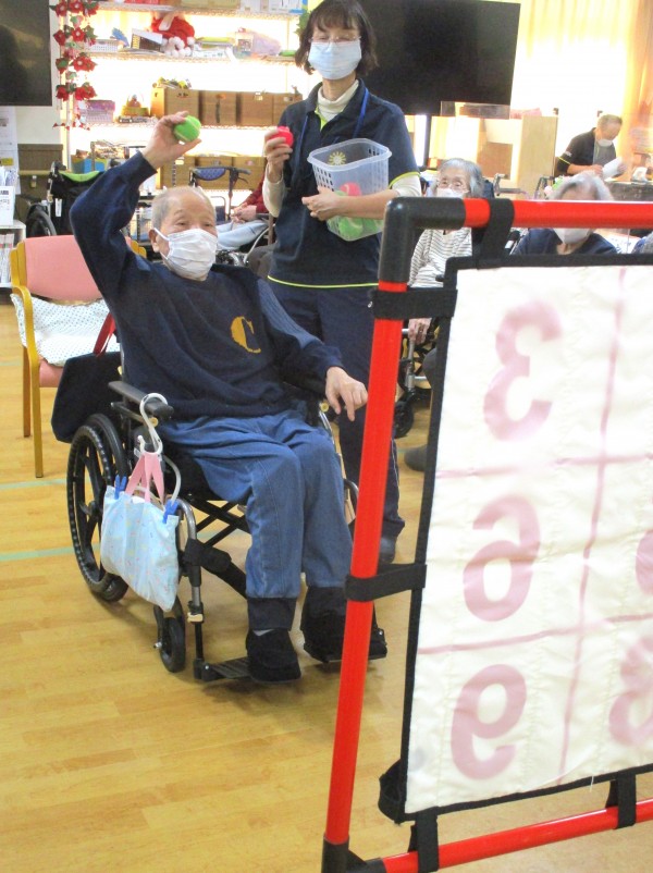 本日のレクリエーションは、皆様におなじみの「的当てゲーム」を行いました。