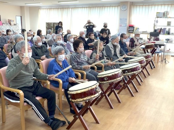 先日、デイサービスにて 新河岸太鼓会 の皆さまをお迎えし、和太鼓の演奏会を開催しました!