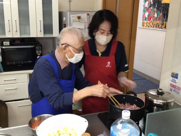 普段の調理レクリエーションより忙しいのに、皆さんとっても楽しそうです!