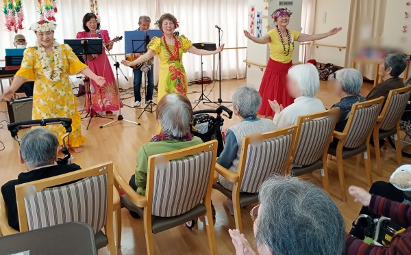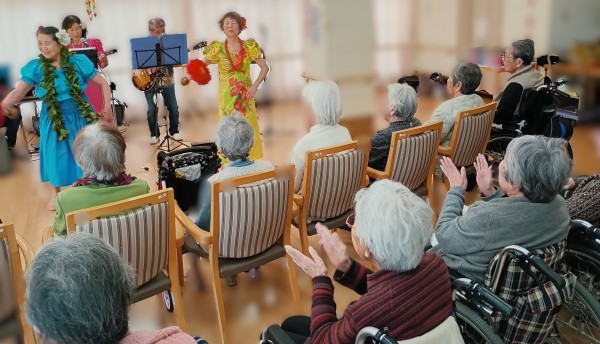 入居者の皆様は、手拍子をしたり、一緒に踊ったりと、とても楽しまれておりました♪