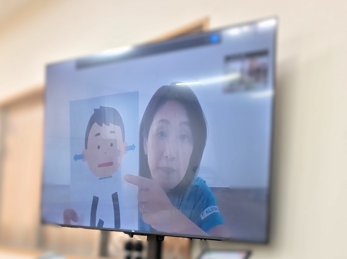 お耳のマッサージをしながら声を出したり、舌を動かしました♪