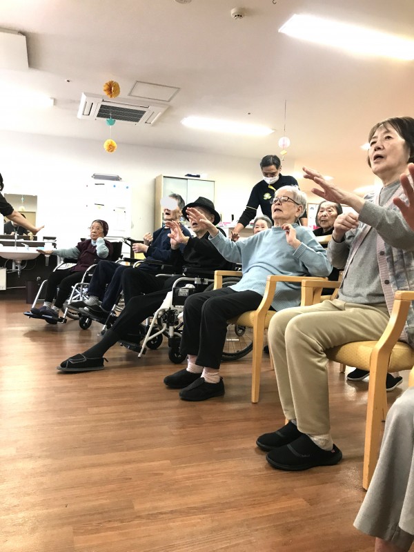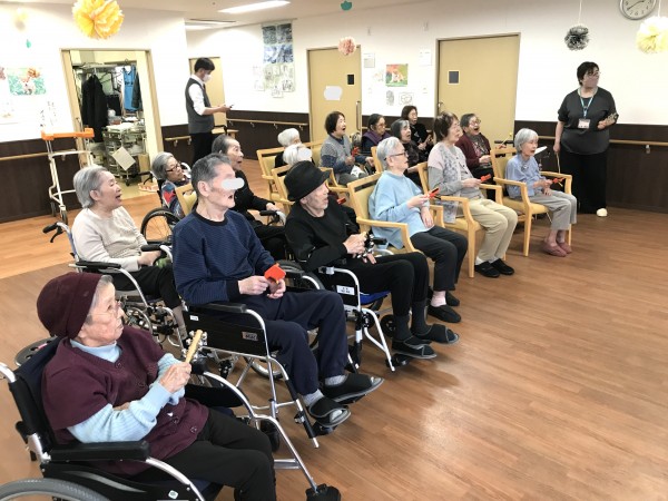 簡単な体操や、楽器を使った合奏、会話も楽しみます。