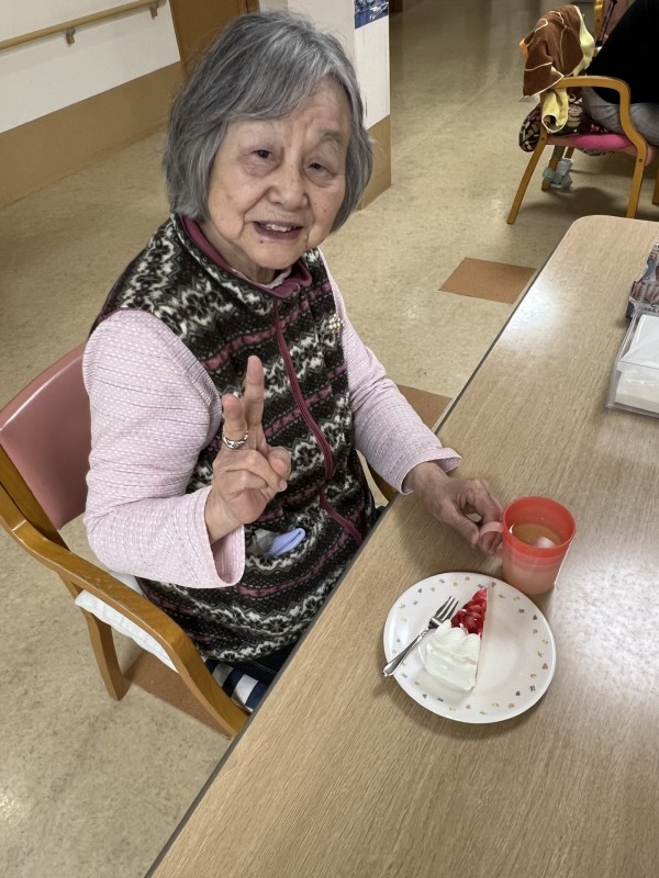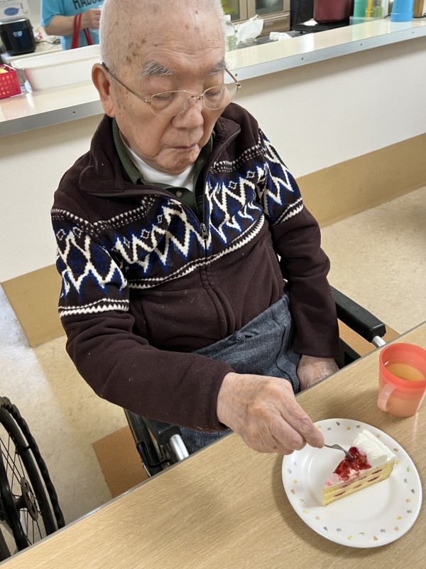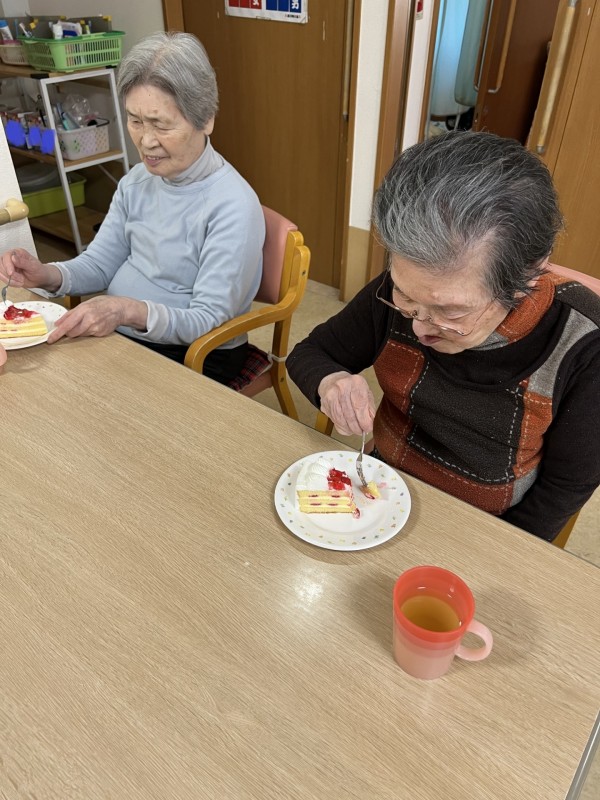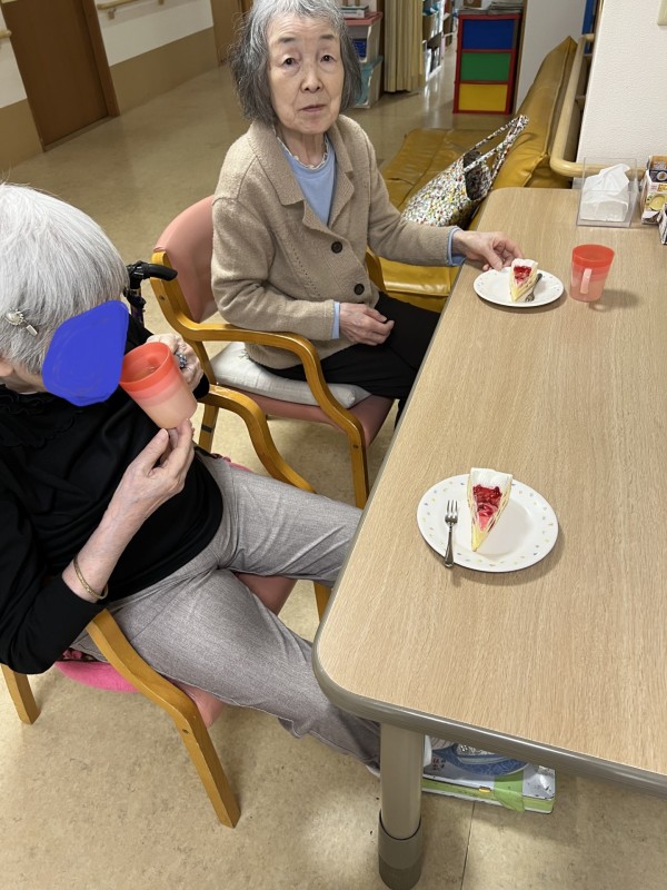 今回は1階で3月お誕生日会がありましたので、いちごケーキを2階の皆さんにも召し上がっていただきました。