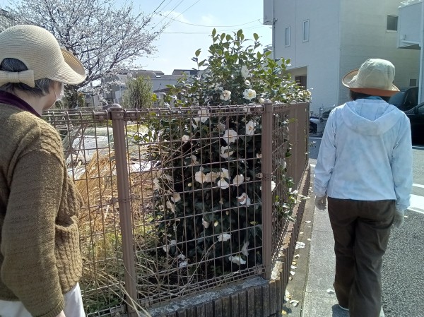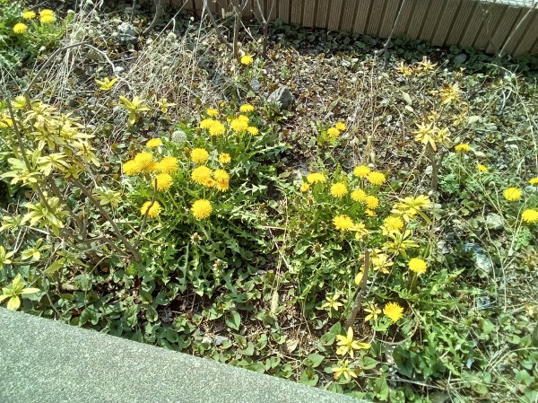 タンポポ、ツバキ、雪柳も咲いてます (^0^)