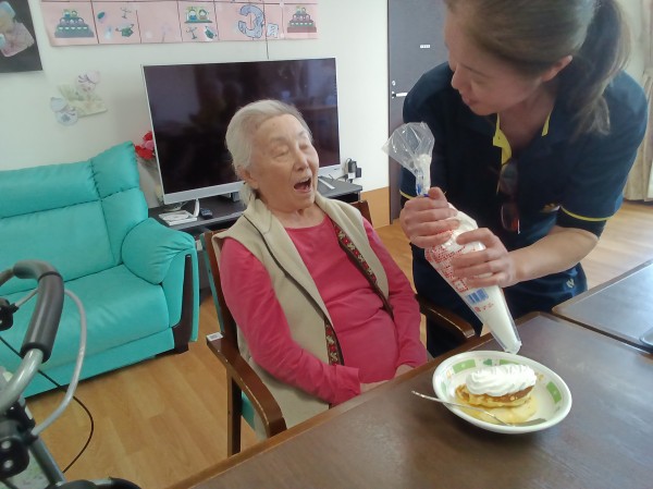 ホイップは、ご利用者様がストップ!!と言うまで大盛りにし(≧▽≦)フルーツはご自身で好きなだけ盛って頂きました(●´ω`●)