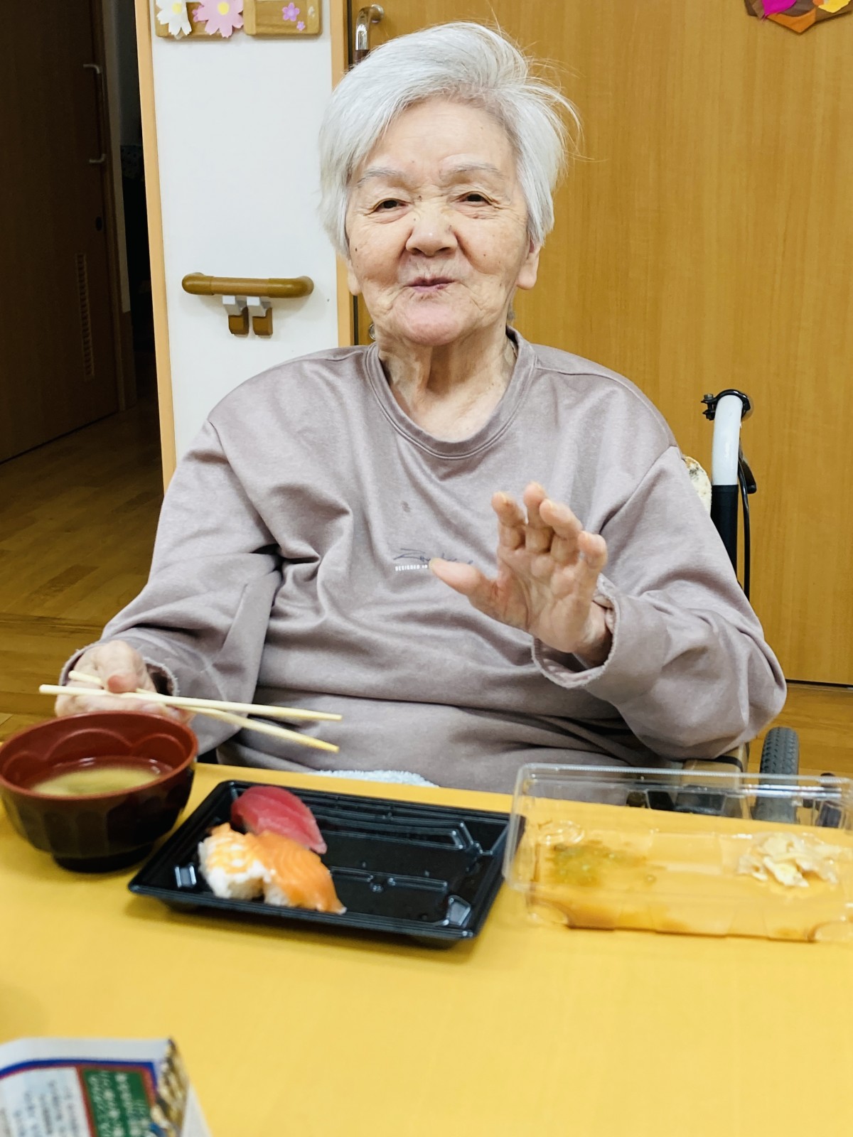 やっぱりお寿司が好きな方は多く、今日のお昼はお寿司ですよ!ってお話しすると