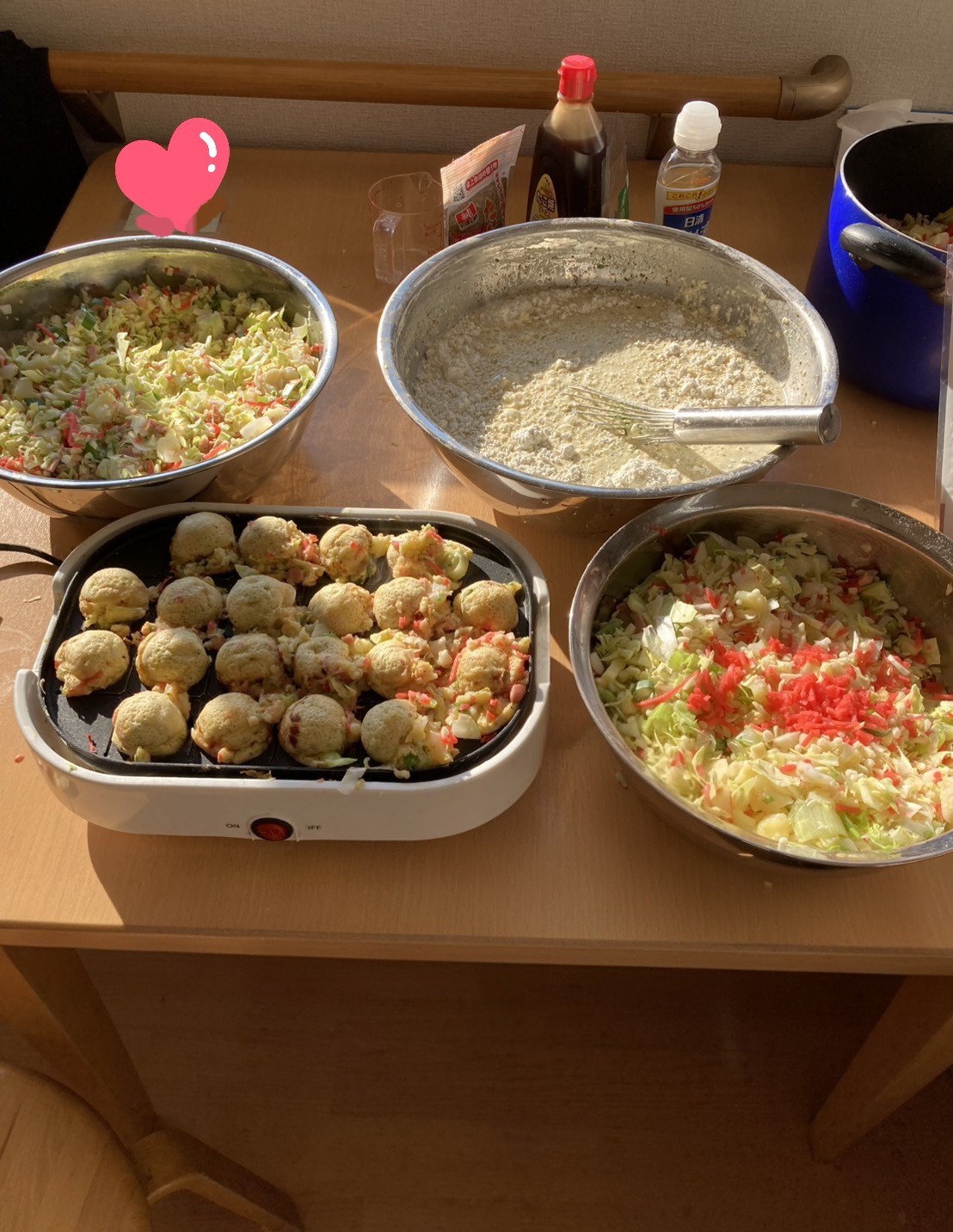ソースやマヨネーズ、かつお節をかけて美味しくいただきました!