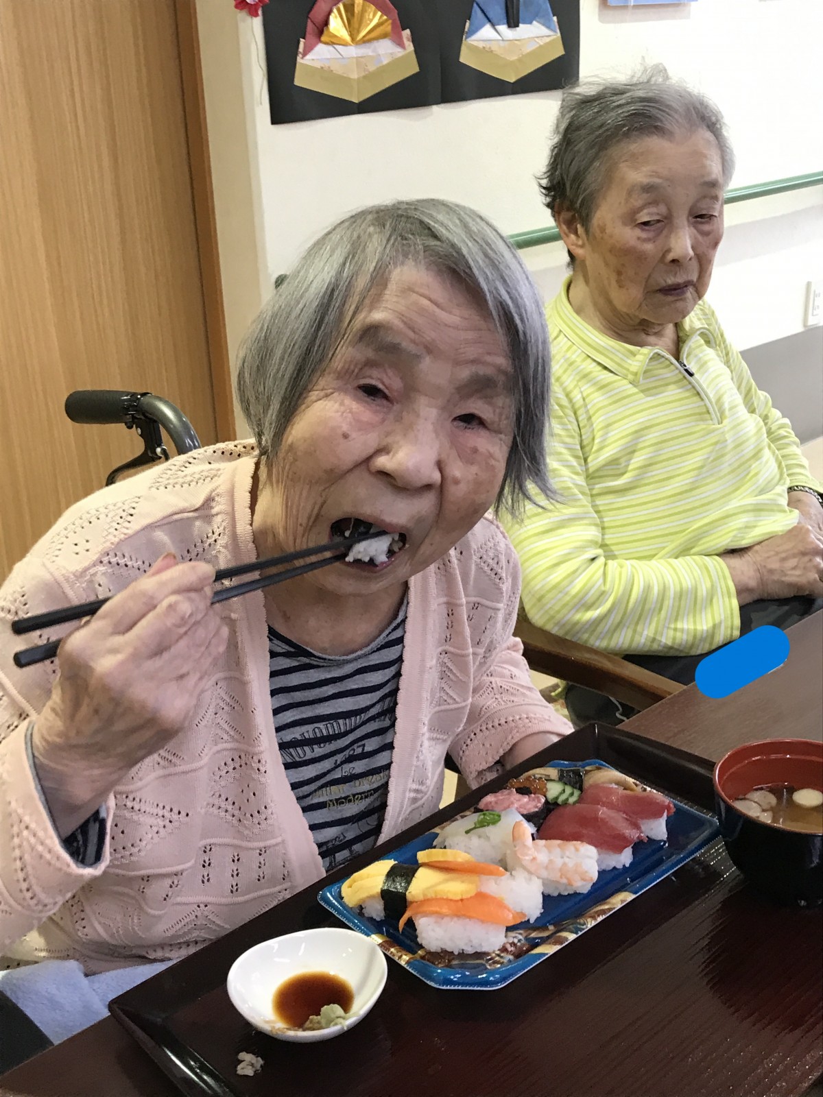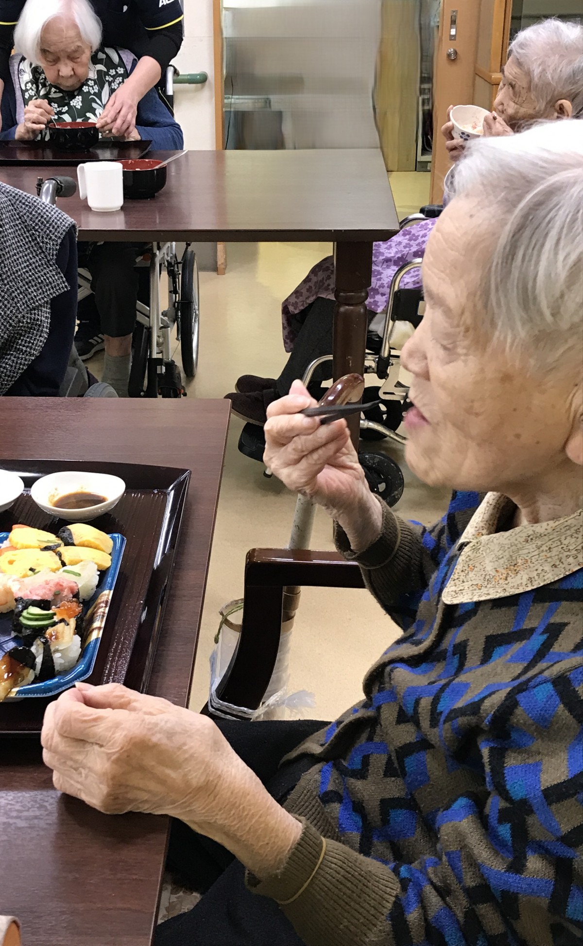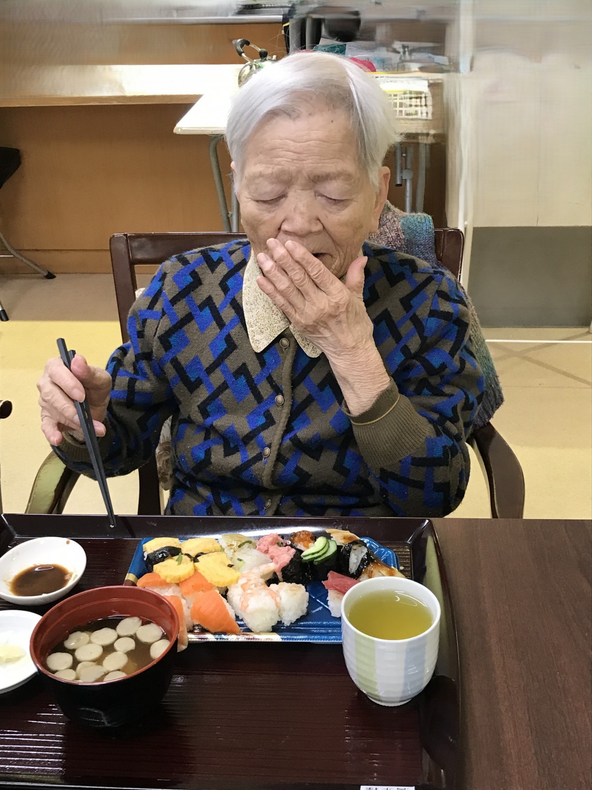 お誕生日会の日の昼食では お寿司をお召し上がりになりました