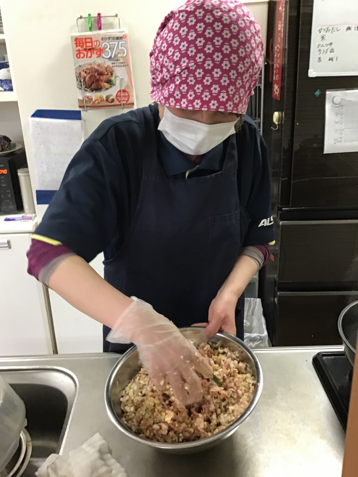 ミンチを合わせてひたすら捏ねます!(^^)!
