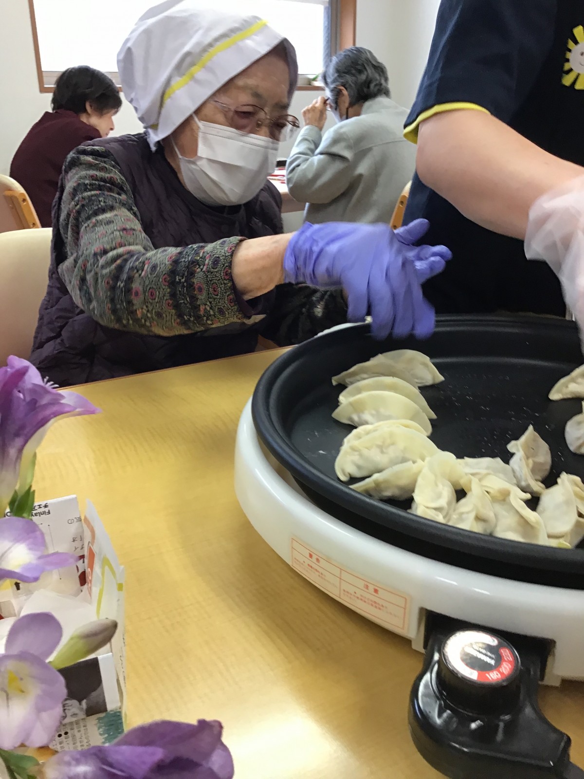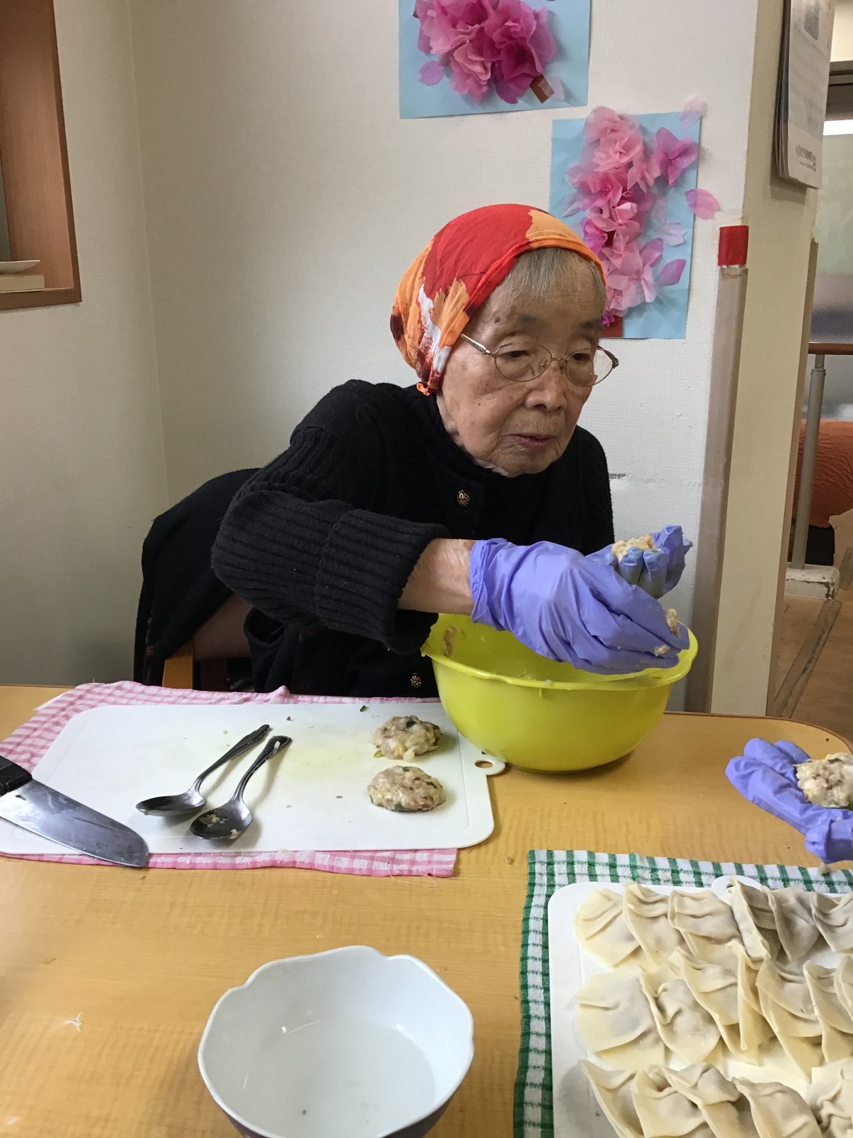 皆さんで協力しながら、餃子の皮で包みましょう~(^_-)-☆
