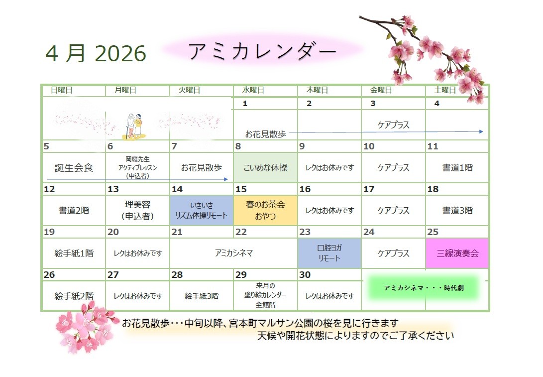 4月のアミカレンダー