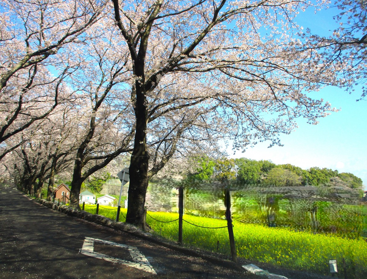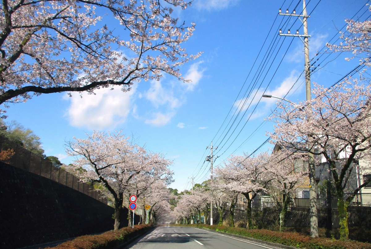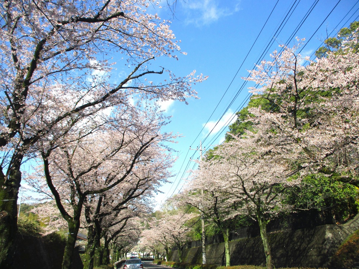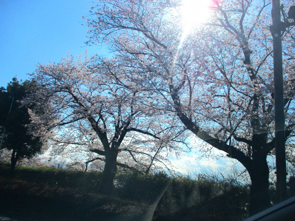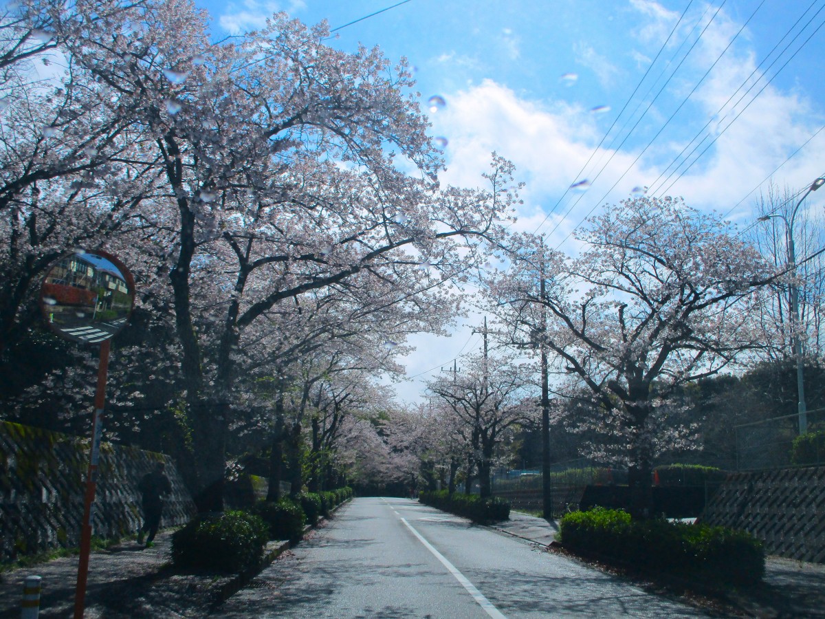 ドライブコースの桜をのせます。 ※助手席の職員が撮影しました。