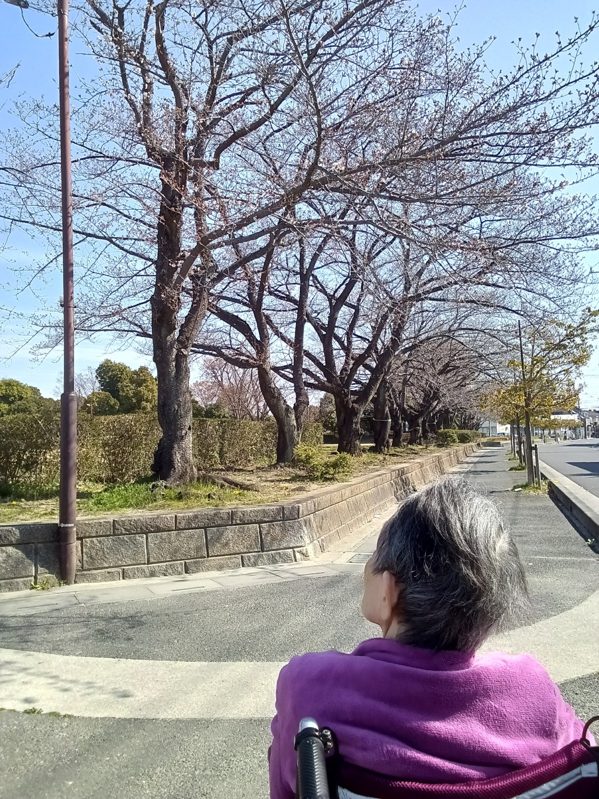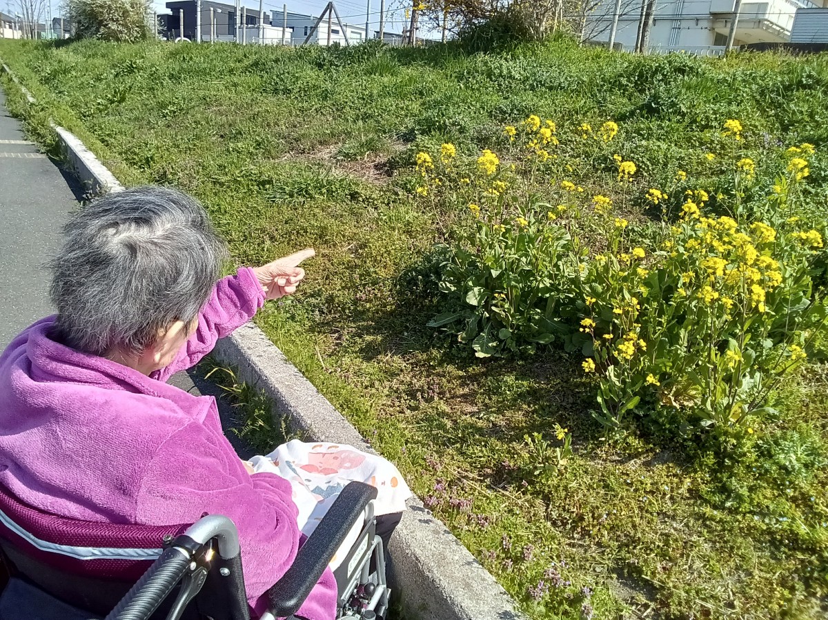 散歩中ちょっと遠出をしてみました♪「あれは菜の花かしら?」と指さすご利用者様♡桜はまだ少なかったですが1週間後が楽しみですね~(^^♪