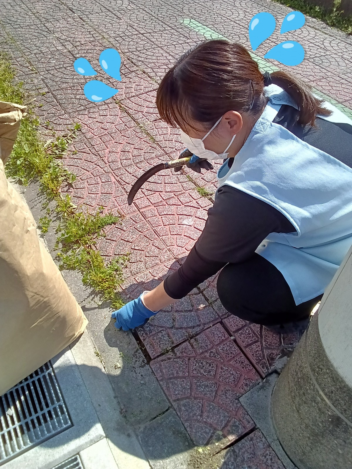 散歩から戻ると電柱のかげからカマを片手に「お帰り〜♪」かげで頑張るホーム長の元気な声が聞こえました♡雑草取りお疲れ様ですm(_ _)m
