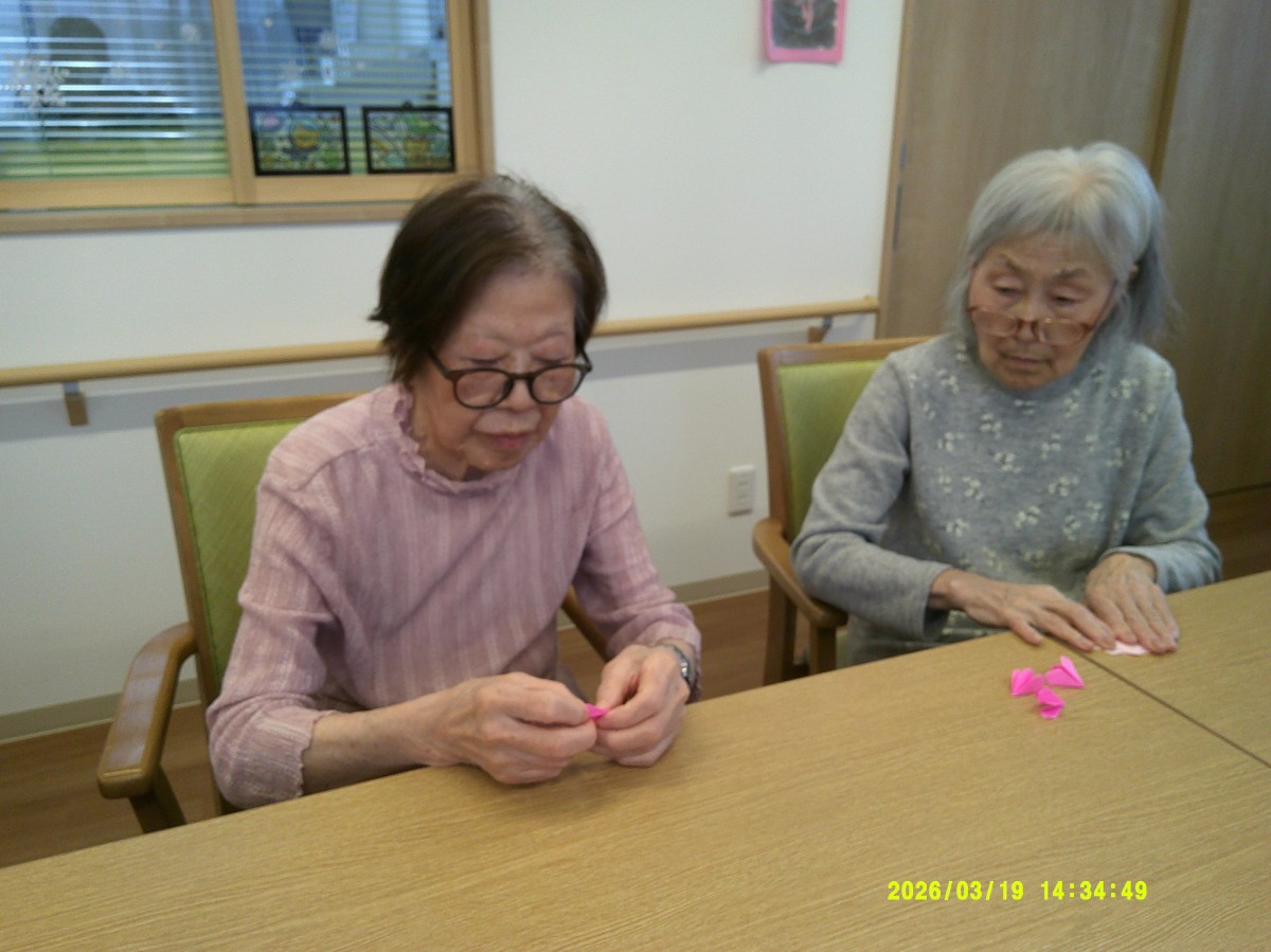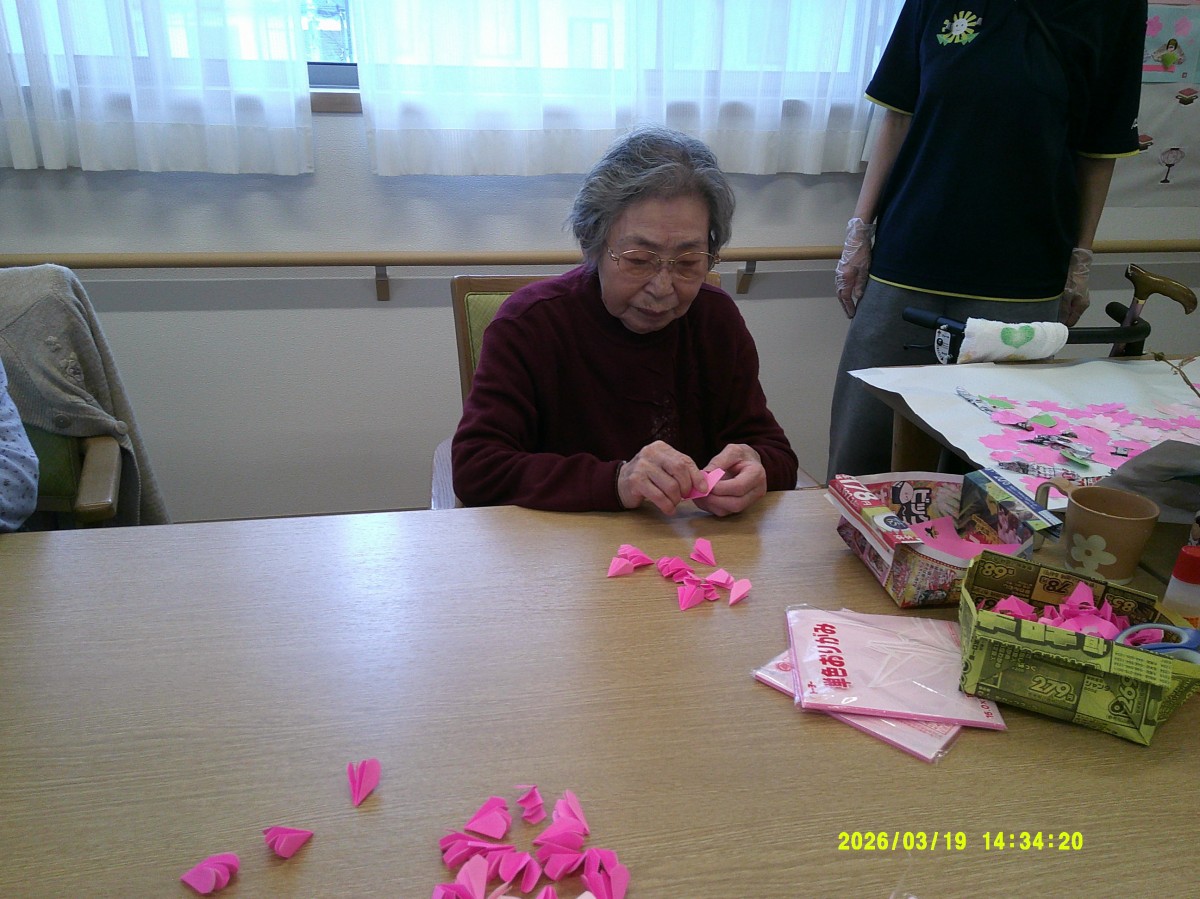 折り紙で桜を作っていきます。