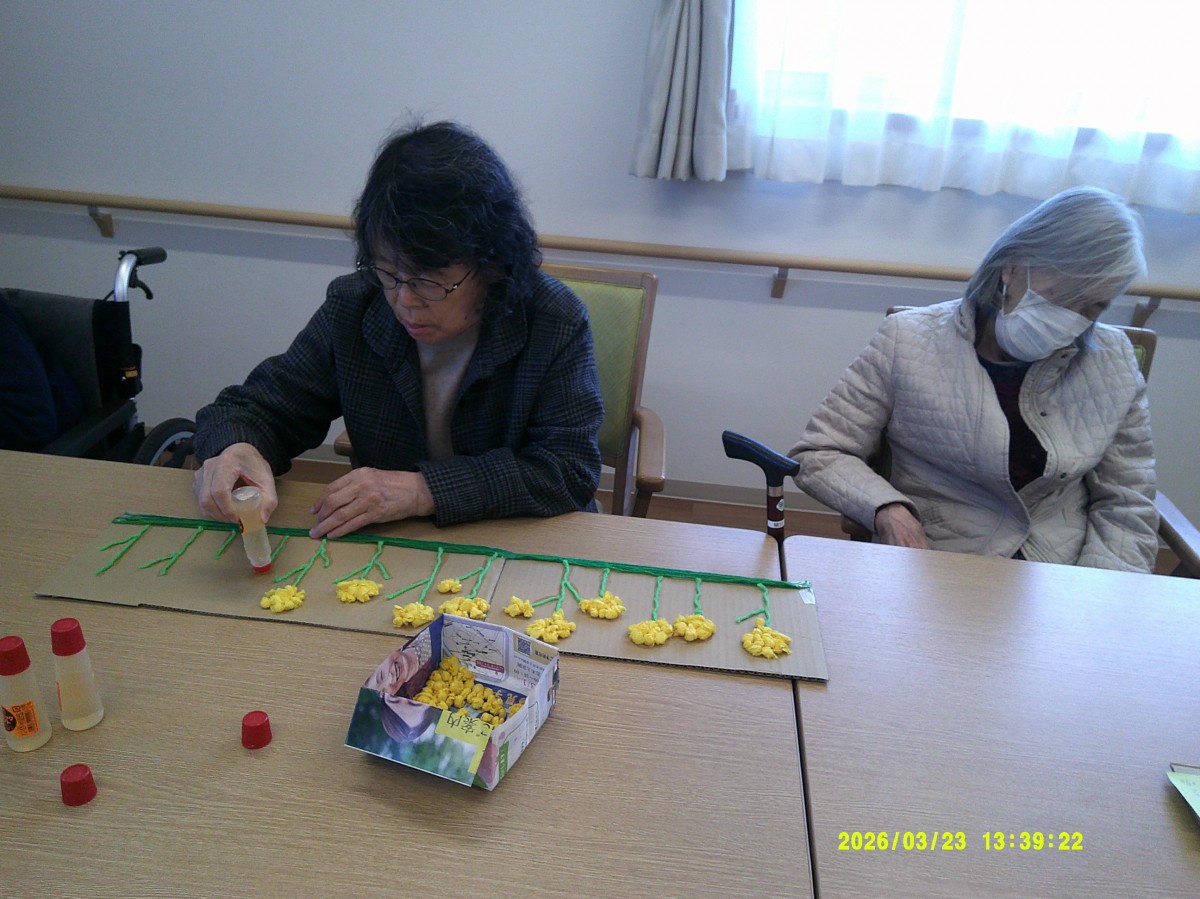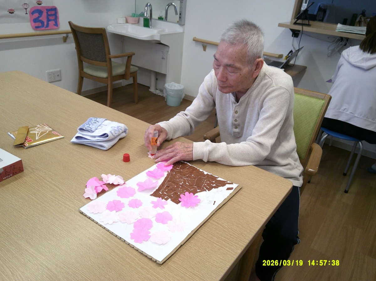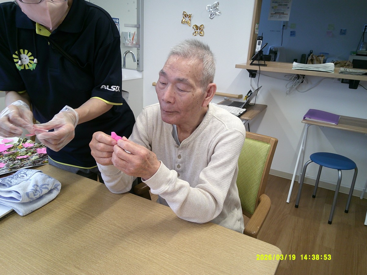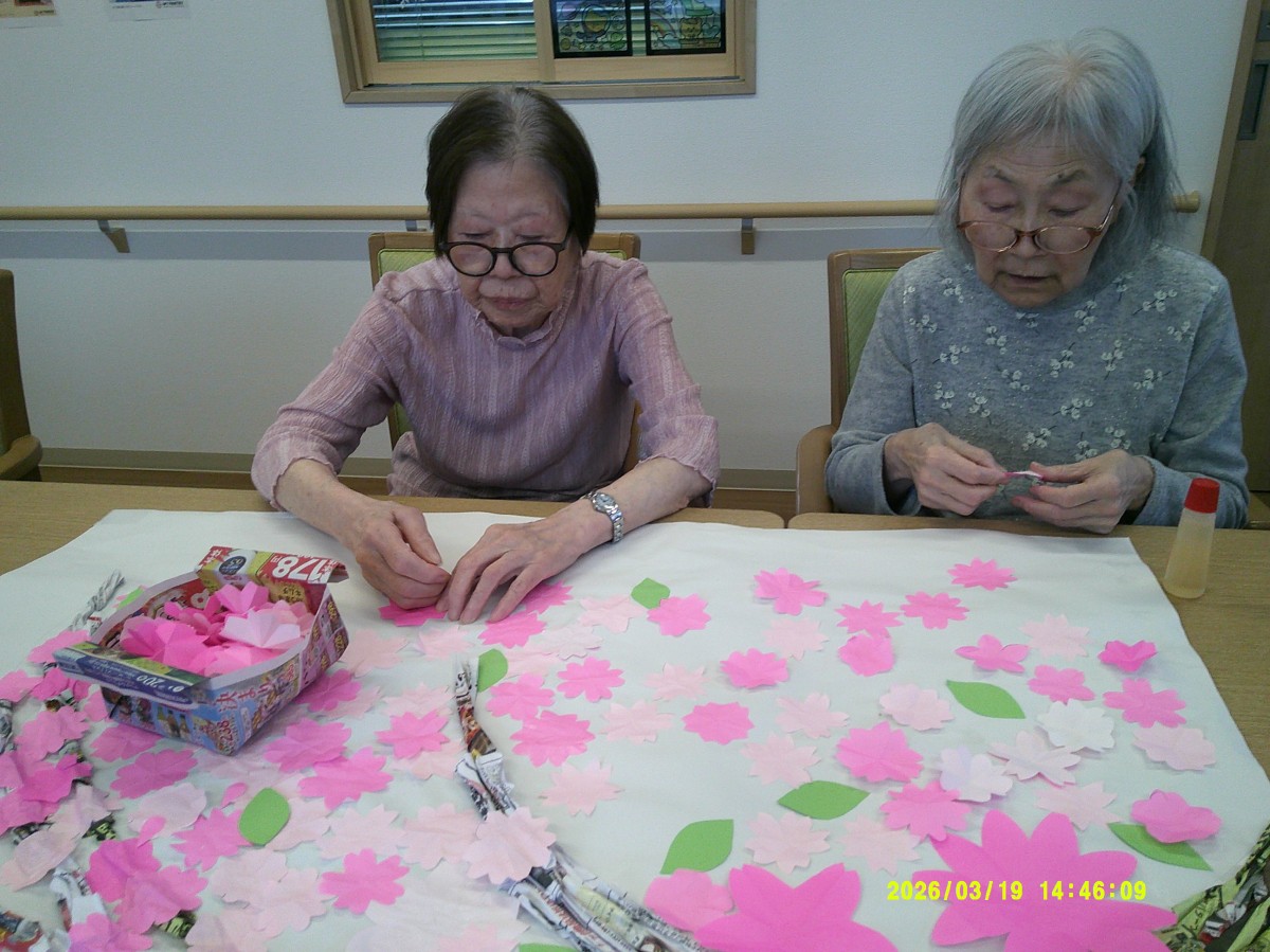 チラシで作った枝に桜を貼っていきます!