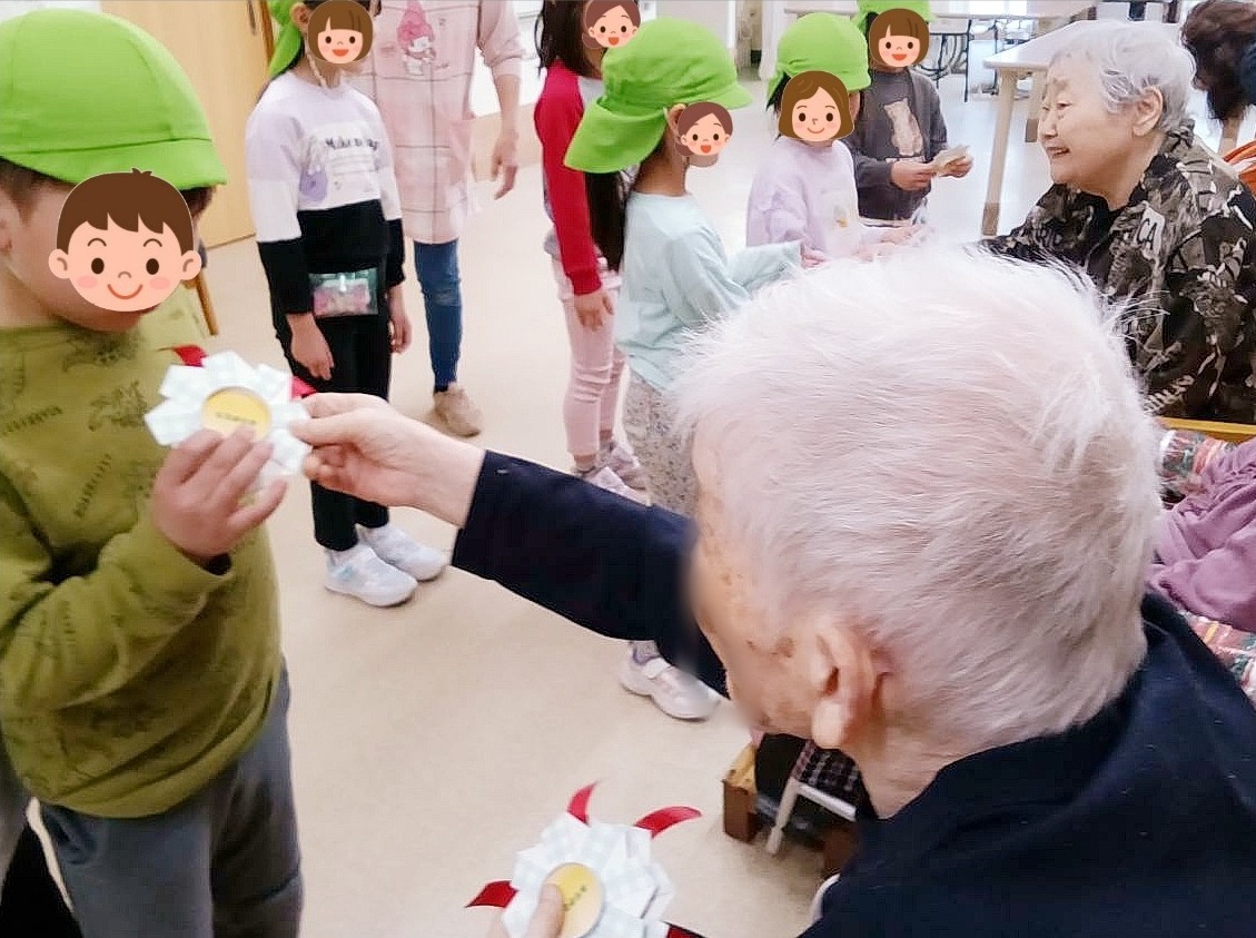 園児たちからの突然の歌のプレゼントにご利用者様は感激!