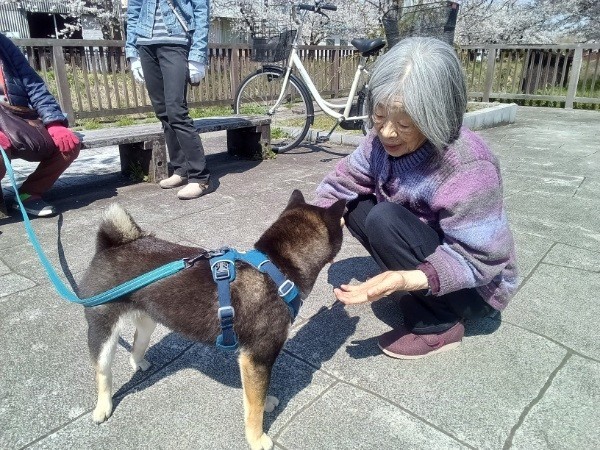 お散歩に来ていたワンちゃんにも出会いました(^^)