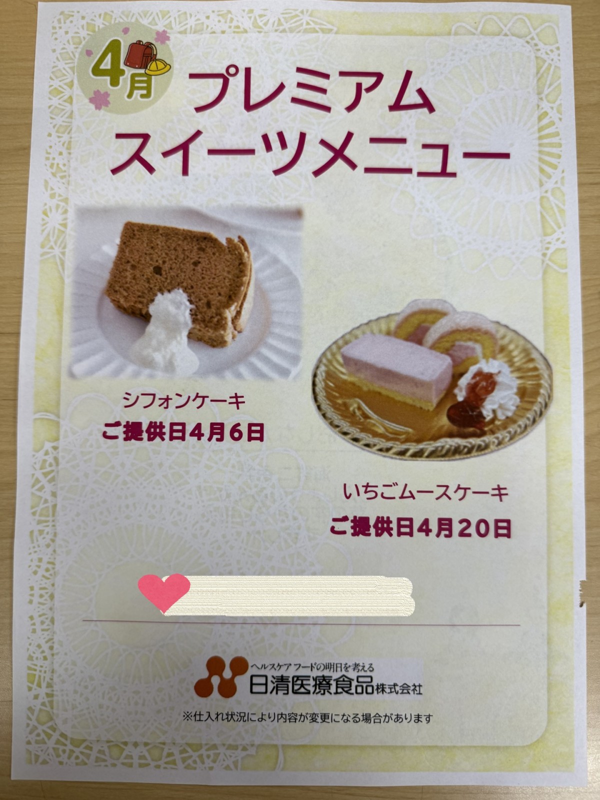 今月のイベント食は 皆様大好きスウィーツです♡