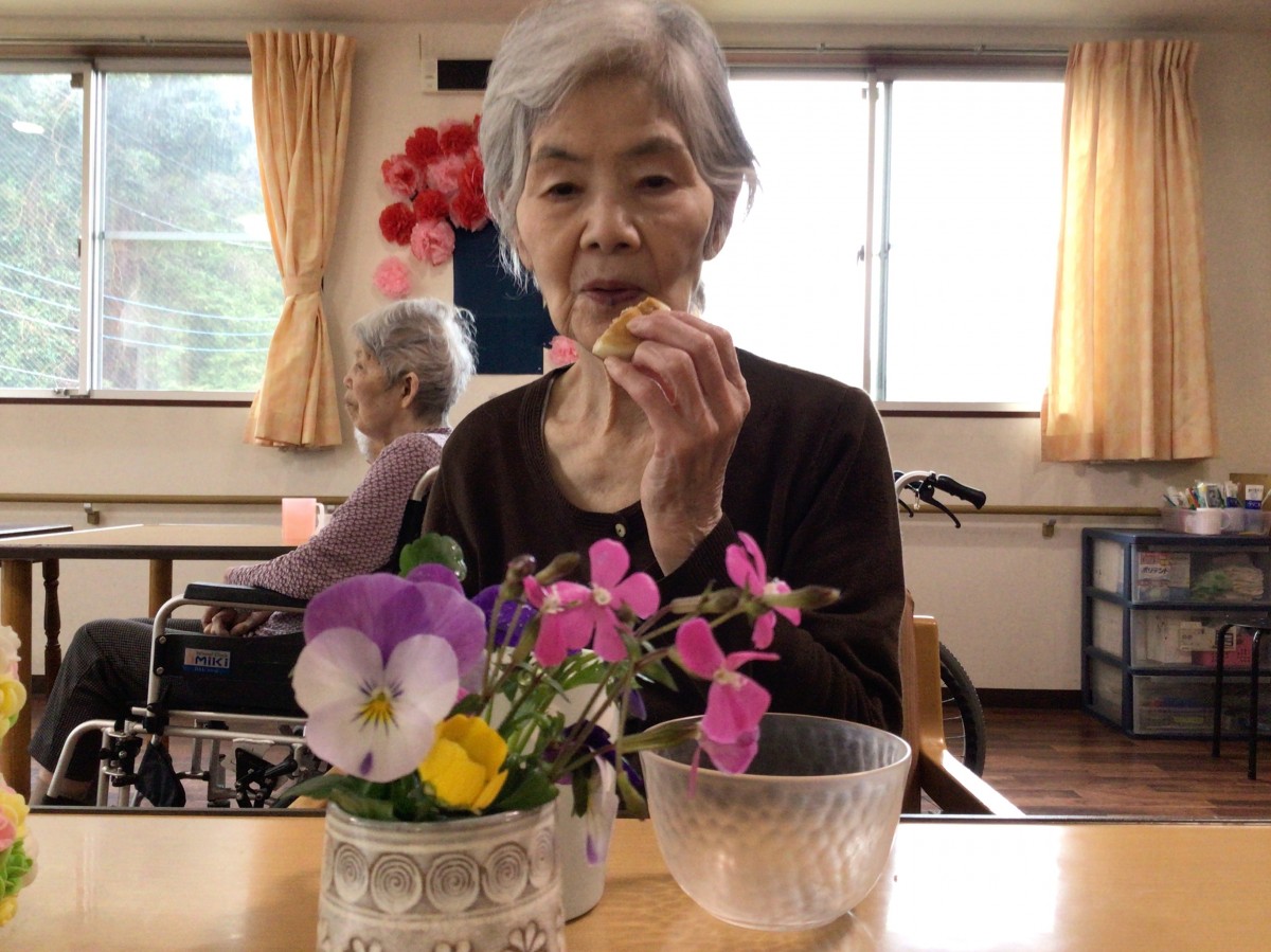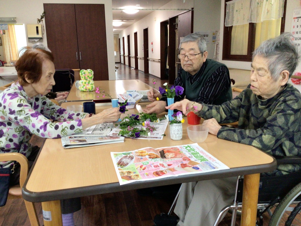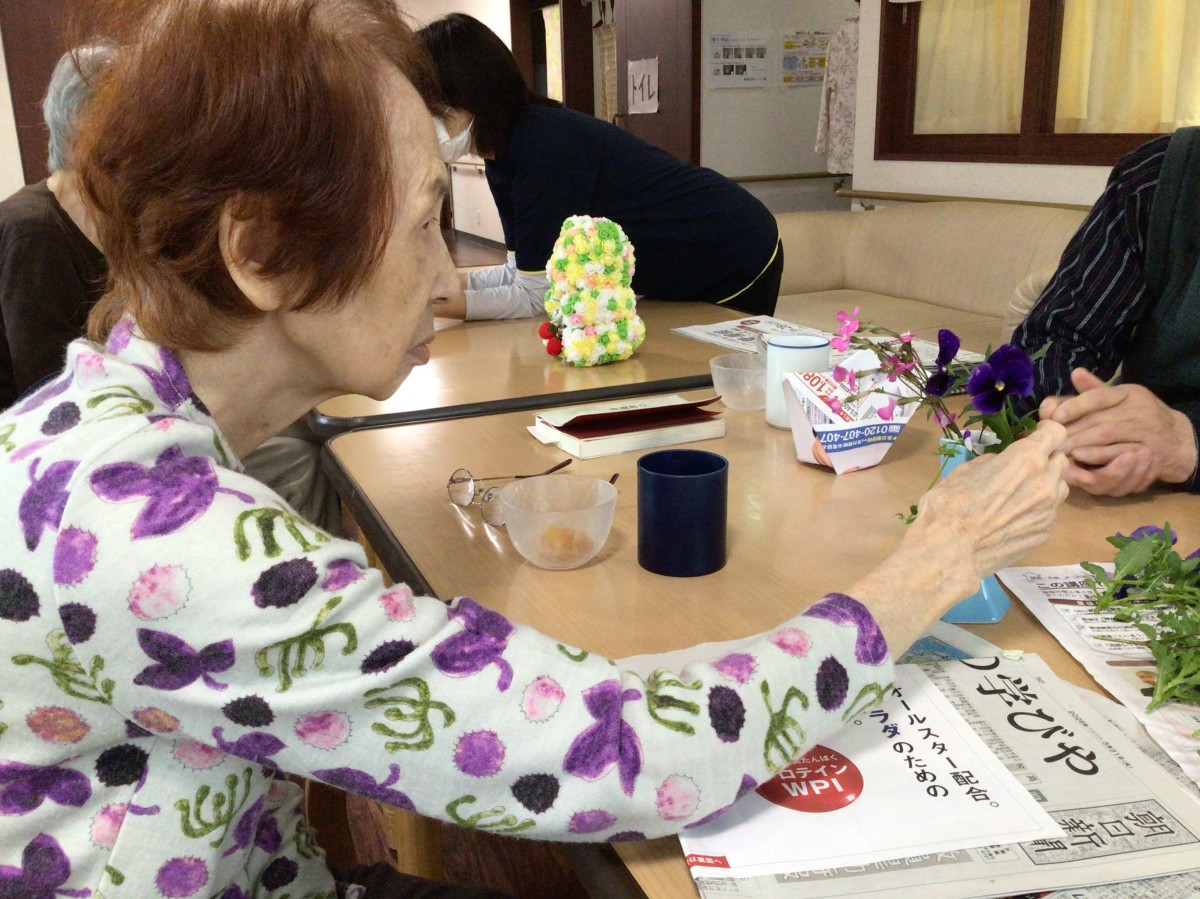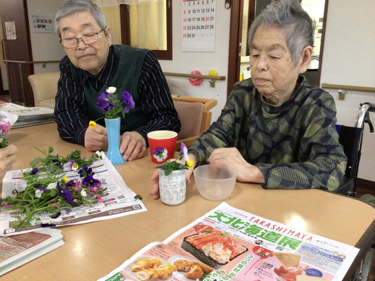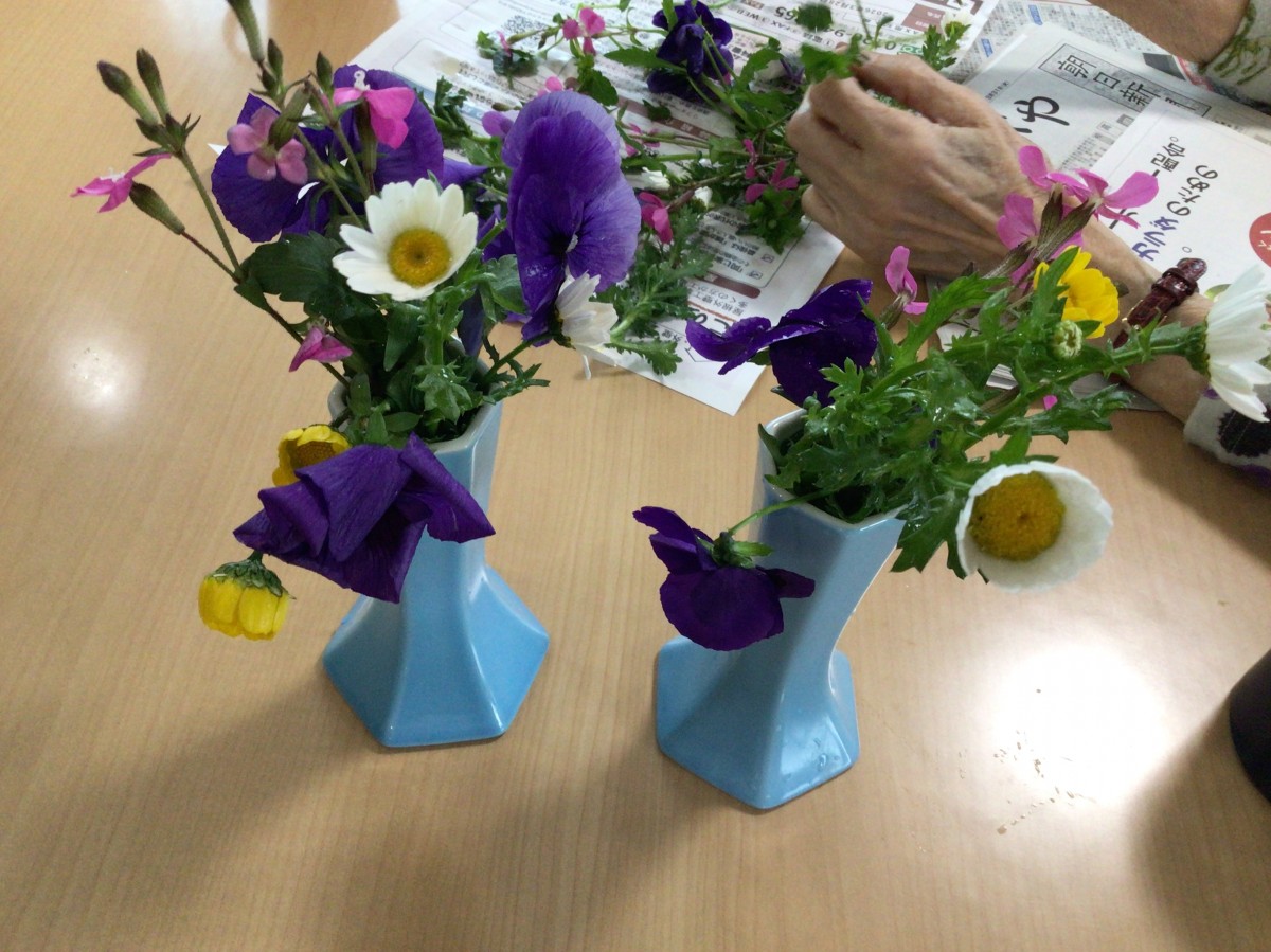 今回は玄関先に咲いたお花を2階のご利用者様方に花瓶に飾っていただきました!(^^)!