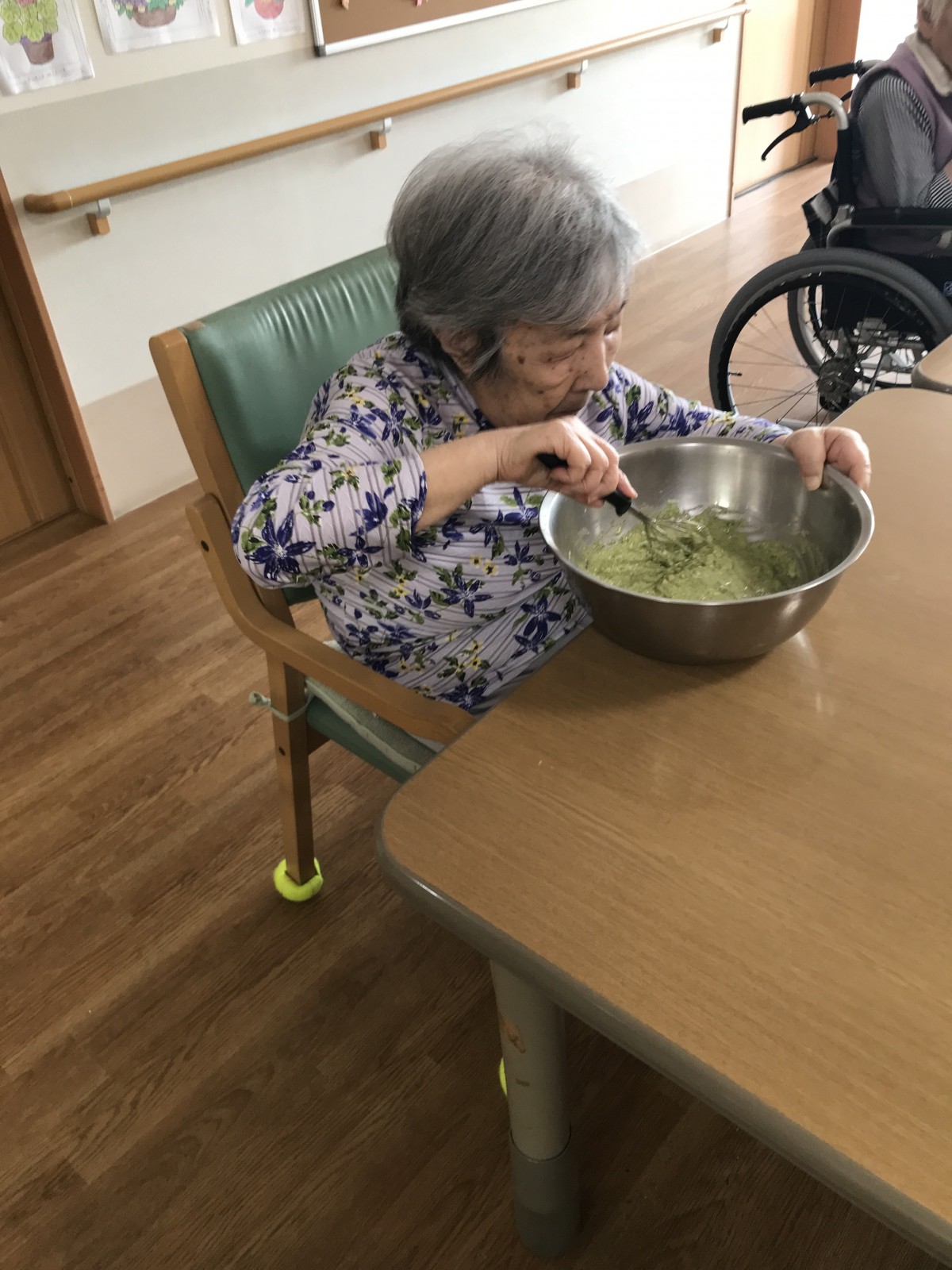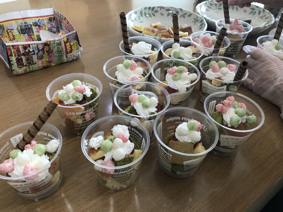 なんと!2種類の生地(バニラ・抹茶)を作り、焼いて、飾りつけまで♪