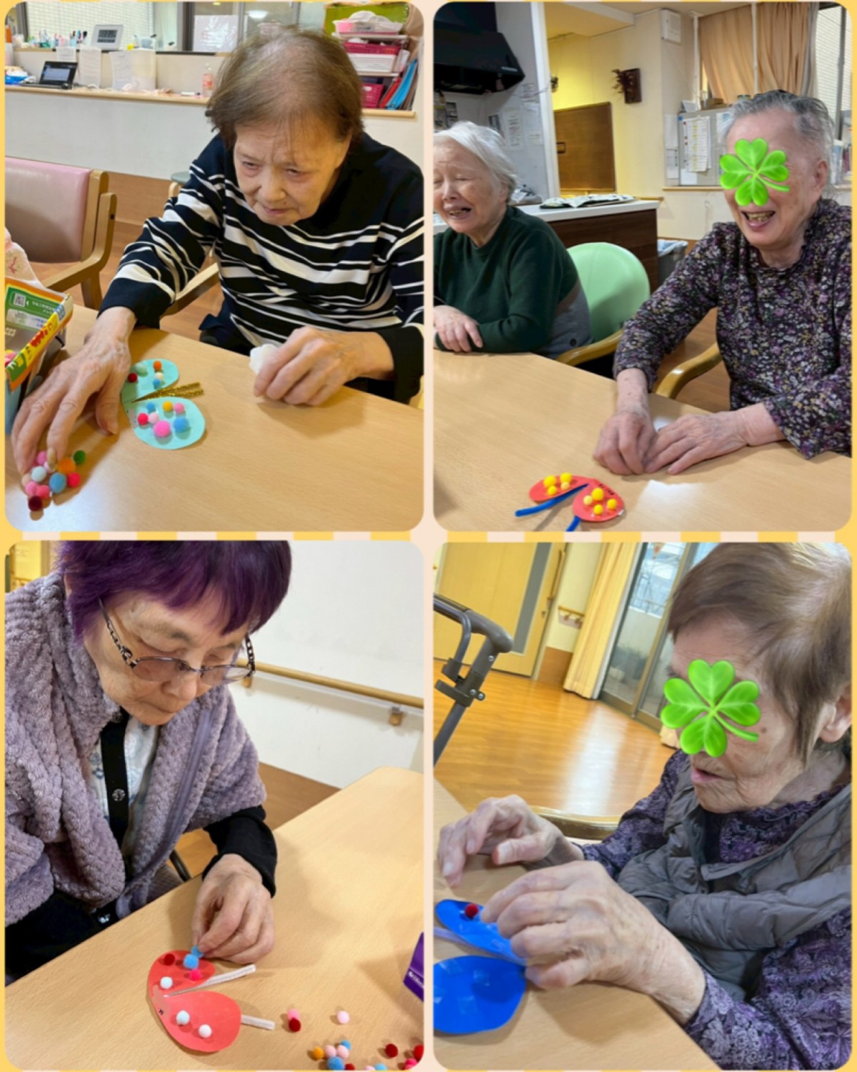 この日は工作レクとして、蝶々作りを行いました(^^)